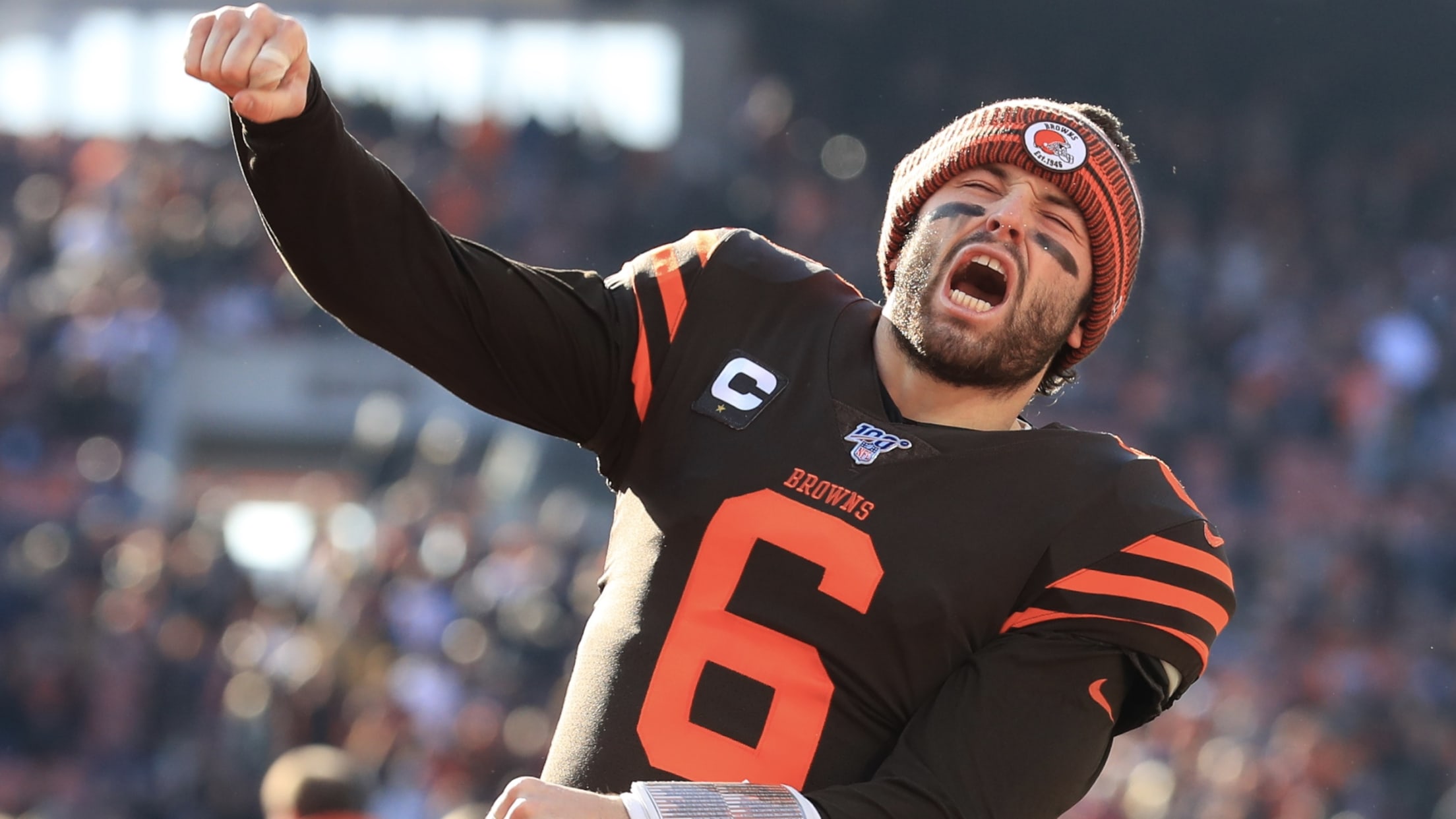 Mayfield was drafted by Cleveland with the first overall selection in the 2018 NFL Draft. Since becoming the Browns’ starting quarterback in 2018, Mayfield has thrown 75 touchdowns and passed for 11,115 total yards. He propelled the Browns to their first playoff win since 1994 with a three-touchdown performance against the Pittsburgh Steelers in the AFC Wild Card Round.