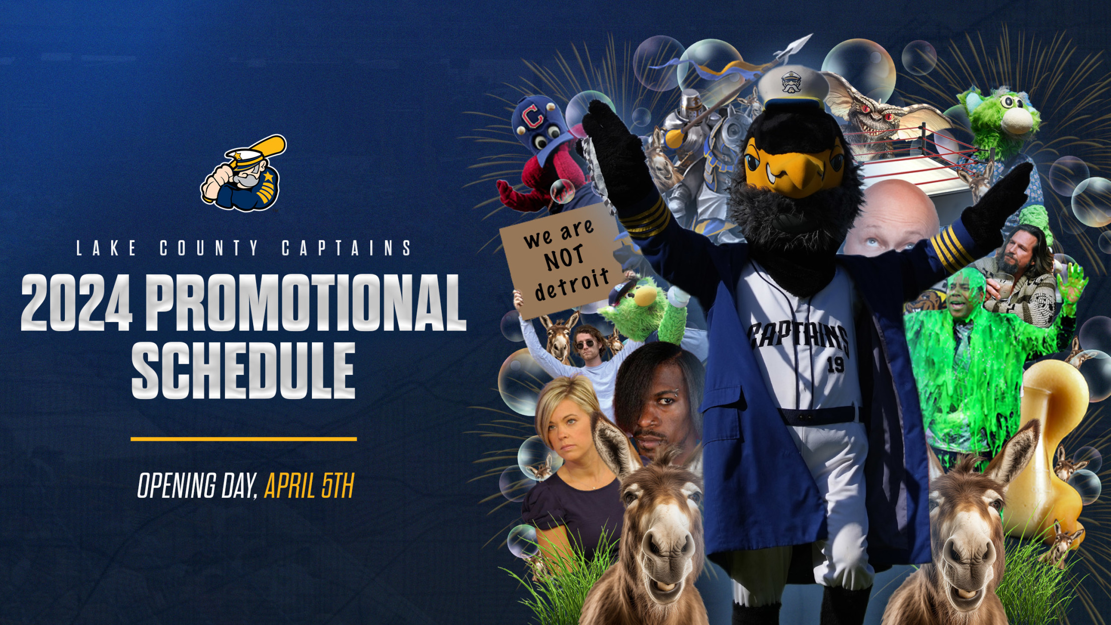 EASTLAKE, Ohio (February 26, 2024) — Excitement is building as the Lake County Captains, the High-A affiliate of the Cleveland Guardians, unveil their much-anticipated promotional calendar for the 2024 season. Fans can expect an array of engaging activities, including the debut of specialty jerseys, an assortment of giveaways, and a series of innovative theme nights.