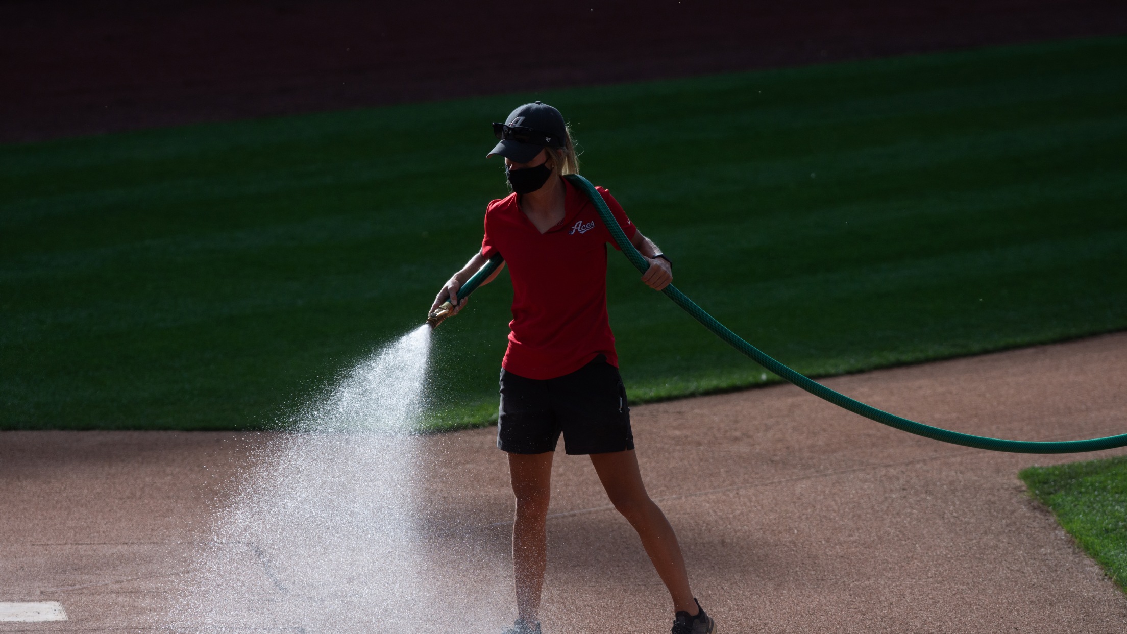 “We’ll move on the warning track and get that dragged and keep watering it for dust control and stability purposes. We’ll flood the warning track, and it’s very good at draining, so trying to keep water in is a little harder, but the attempt counts.”