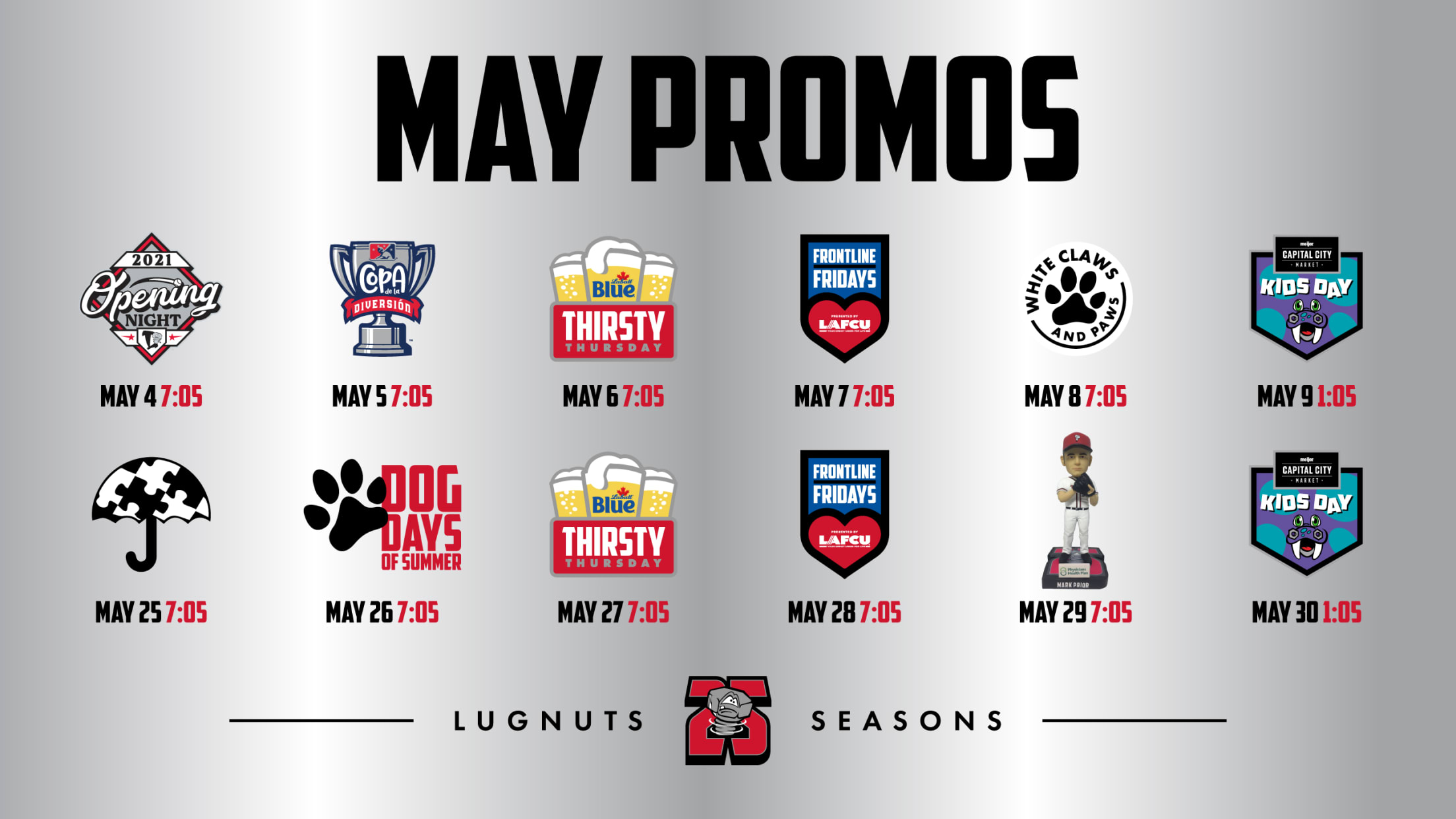 LANSING, Mich. – Grab your calendars, circle the dates, and highlight liberally: The Lansing Lugnuts have released the promotions for the first month of the season at Jackson® Field™, with single game tickets on sale now!
