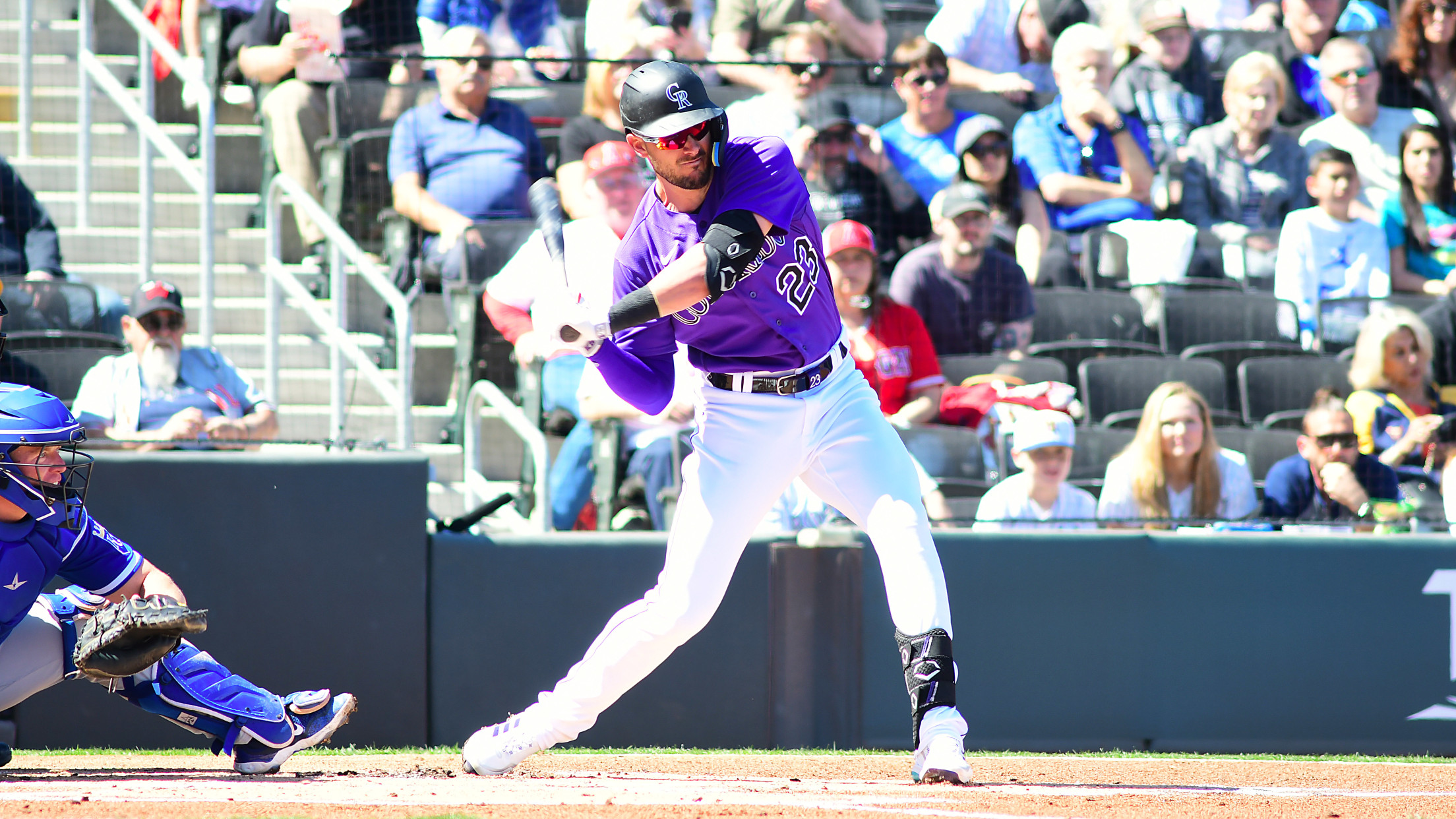 The Colorado Rockies defeated the Kansas City Royals, 7-0, in the finale of the Big League Weekend Part 2, Spring Training two-game series in a rain-shortened contest after 5 ½ innings at Las Vegas Ballpark, before a crowd of 7,741.