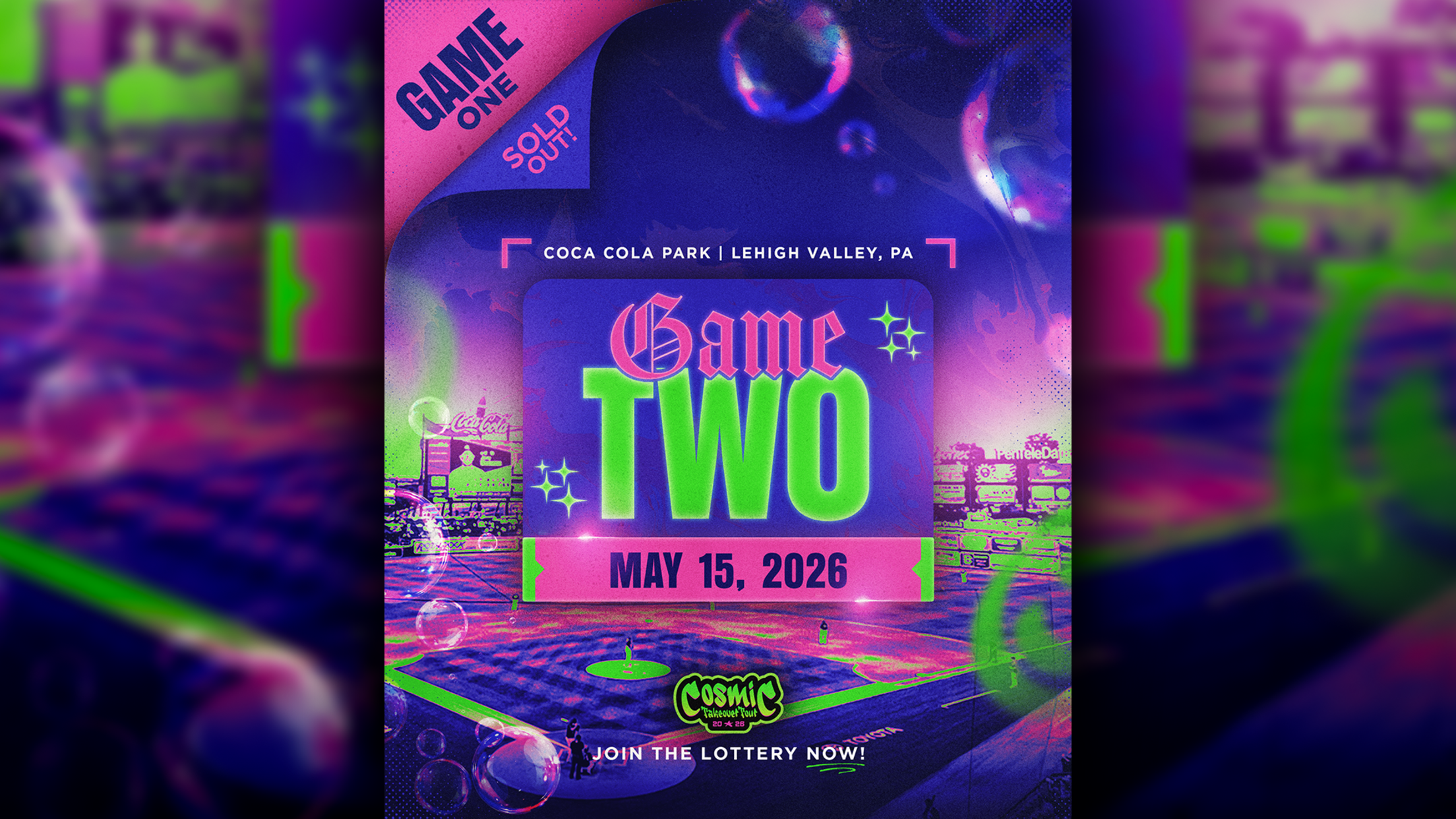 Allentown, Pennsylvania (October 21, 2025) – After the initial announcement that the Lehigh Valley will be glowing cosmic in 2026, Cosmic Baseball is excited to announce the game date for Coca-Cola Park is May 16th, 2026. Fans are able to enter the Cosmic Ticket Lottery for a chance to purchase