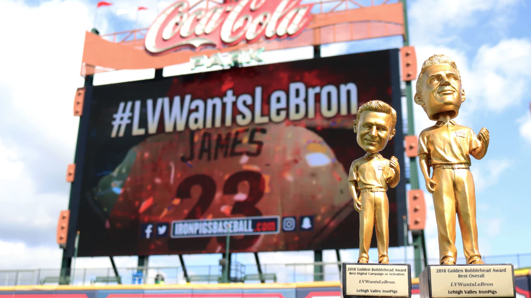 Follow @IronPigsThe Lehigh Valley IronPigs won a pair of Golden Bobblehead awards during last week's MiLB Promotional Seminar in Des Moines, Iowa.The Pigs were awarded the inaugural "Best Digital Campaign or Activation" award, as well as the "Best Overall Promotion" honor for this summer's #LVWantsLeBron pitch.