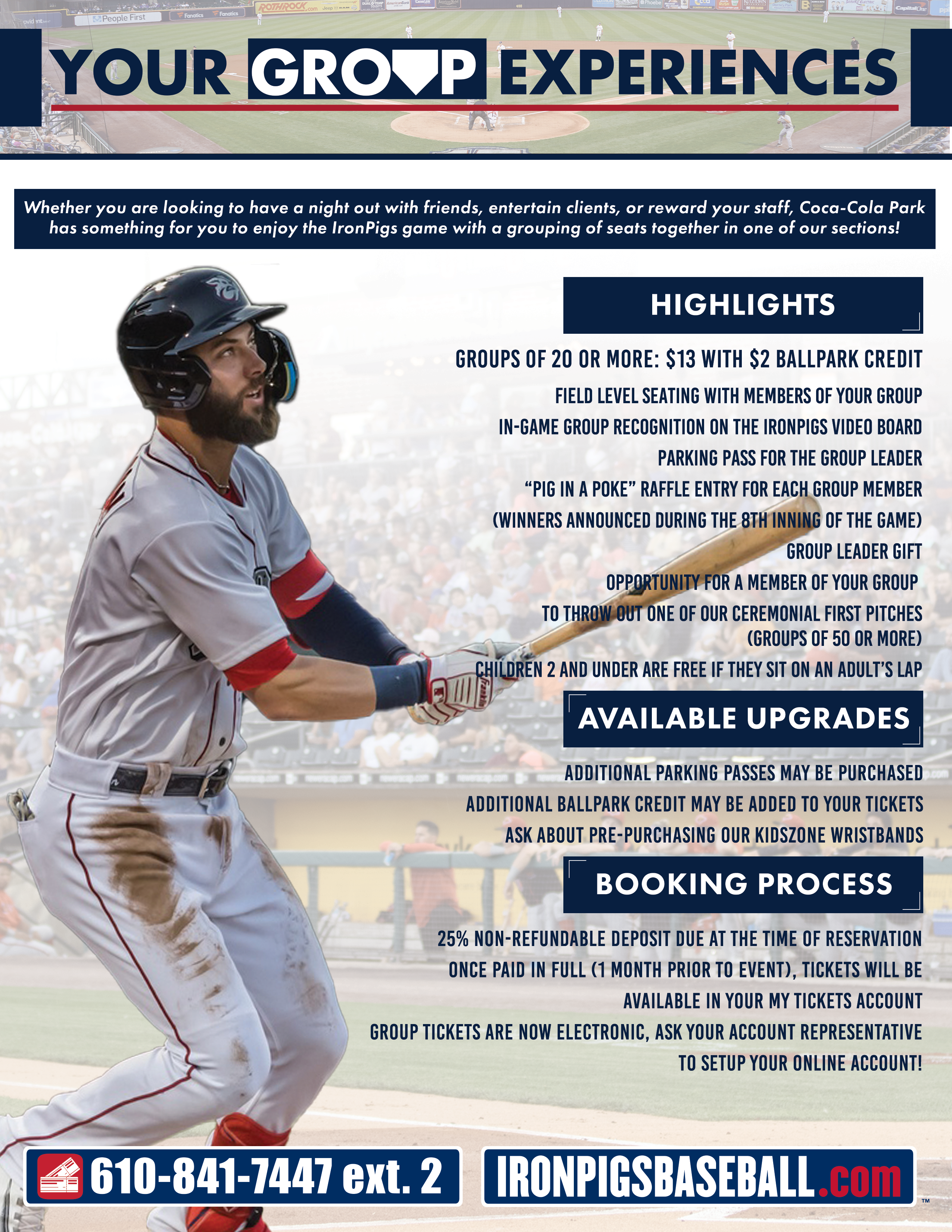 Whether large or small, Coca-Cola Park can accommodate your group so you can enjoy the IronPigs game with a block of seats together!