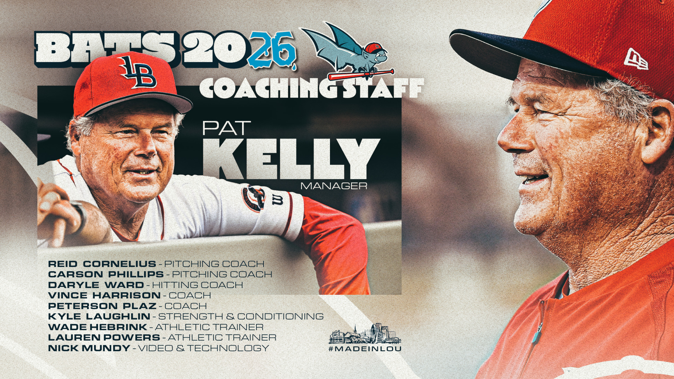 The Louisville Bats, in conjunction with the Cincinnati Reds, today named the coaching staff for the 2026 season, led by the return of Manager Pat Kelly.