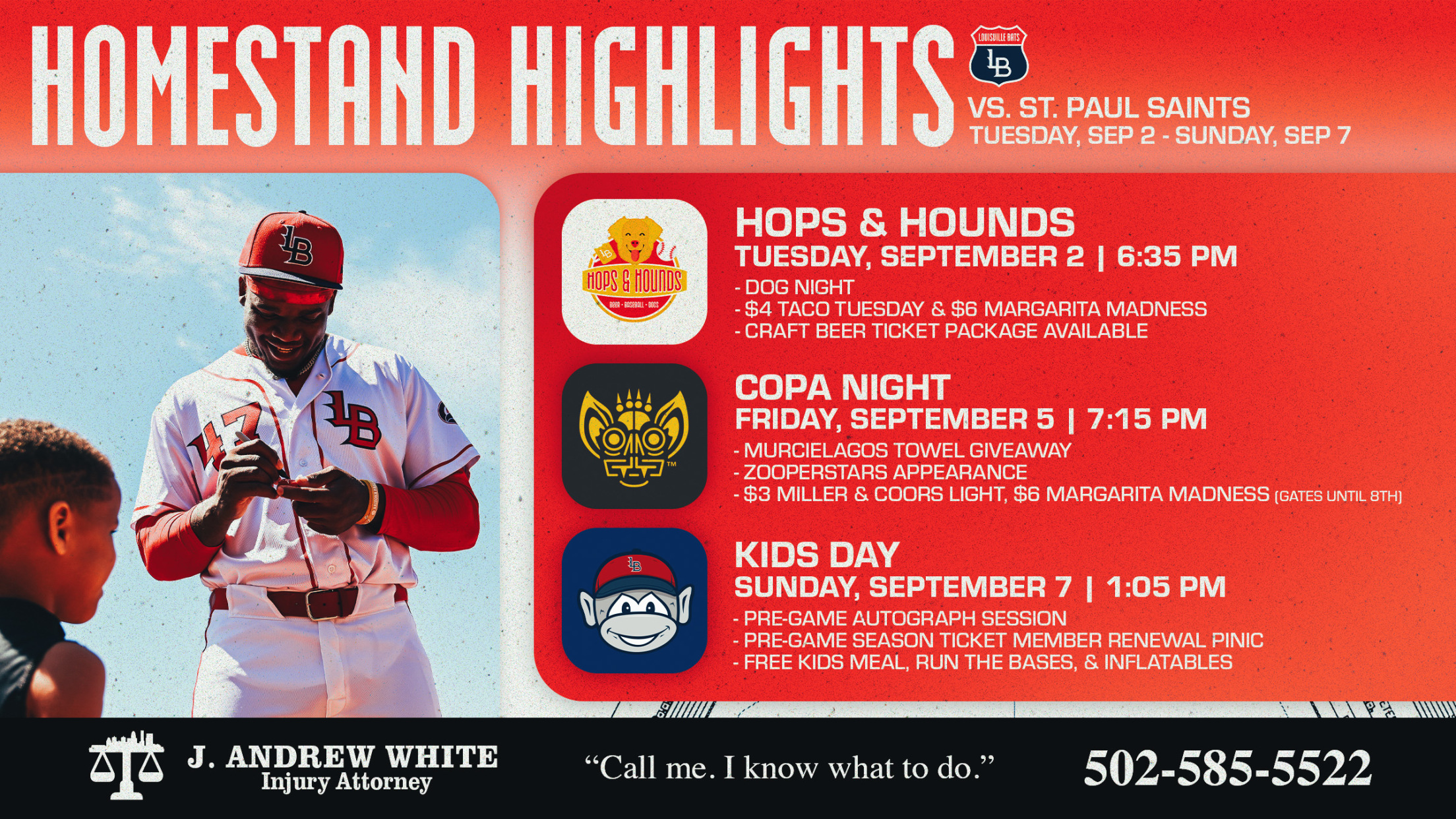 Saturday, September 6 – Louisville Bats vs. St. Paul Saints Gates Open: