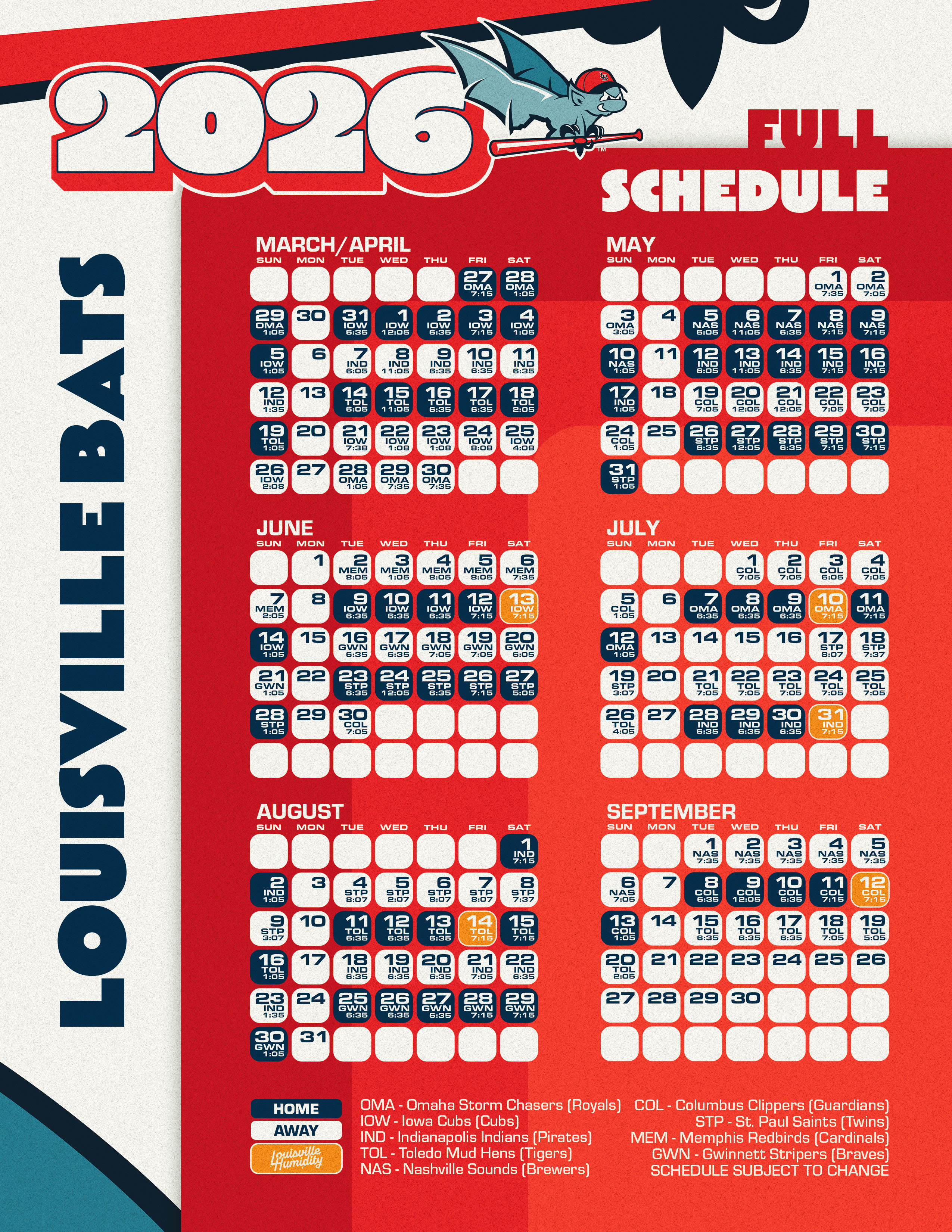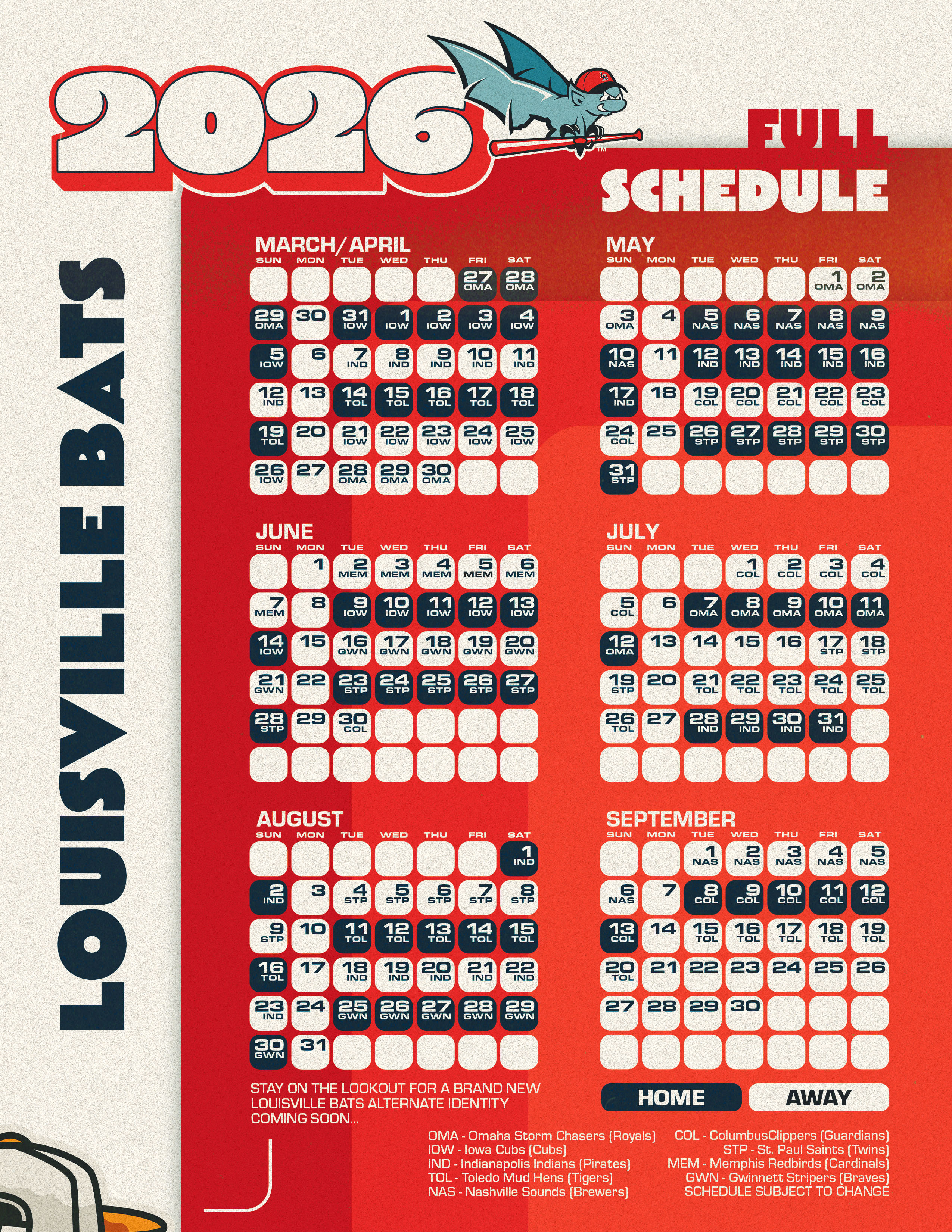 A printable version of the Bats schedule is now available in Adobe Acrobat format. Please note that all information is subject to change.