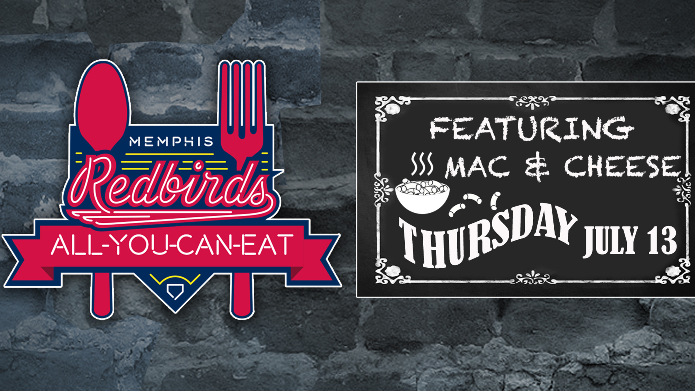 On Thursday, July 13, an All-You-Can-Eat Thursday specialty ticket features mac and cheese and toppings, plus ballpark favorite hot dogs, and one Coca-Cola product and bottled water per person!
