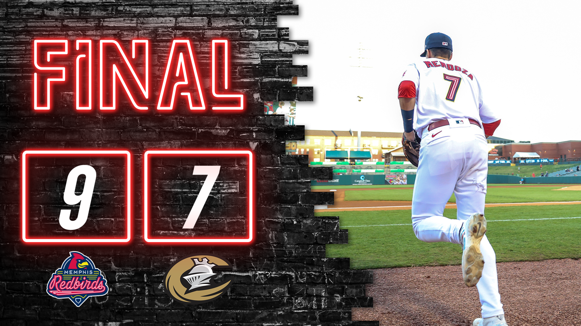 MEMPHIS, TN – The Memphis Redbirds snatched victory from the jaws of defeat in game three of a six game series at the Charlotte Knights at Truist Field in Charlotte, N.C. on Thursday night, taking the win with a final score of 9-7. Redbirds batters stranded the tying run in