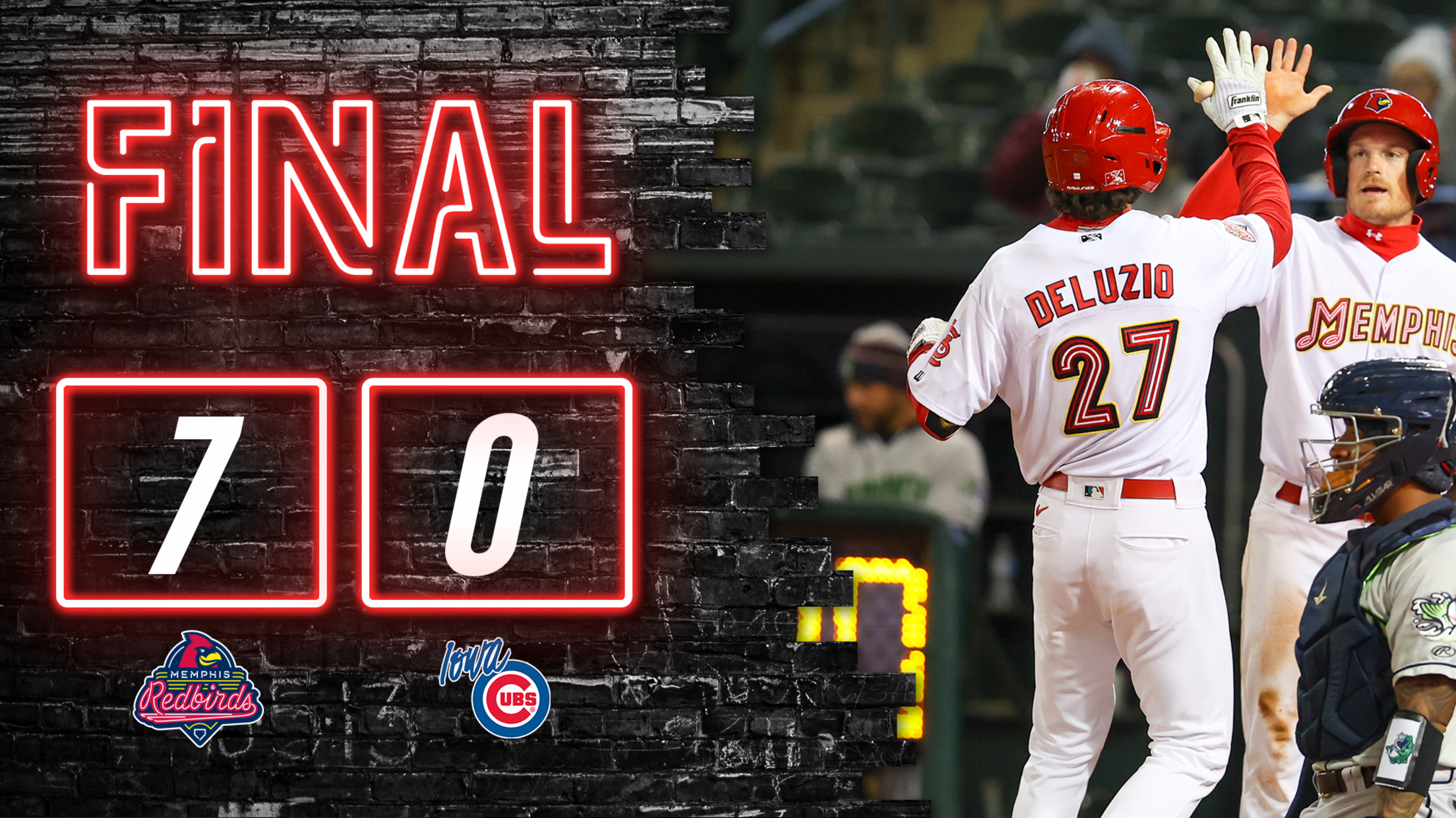 MEMPHIS, TN – The Memphis Redbirds shut out the Iowa Cubs to take game four of the six-game series on Friday night at AutoZone Park by a final score of 7-0. Designated hitter Ben DeLuzio continued his power surge this season, drilling his seventh home run of the year to