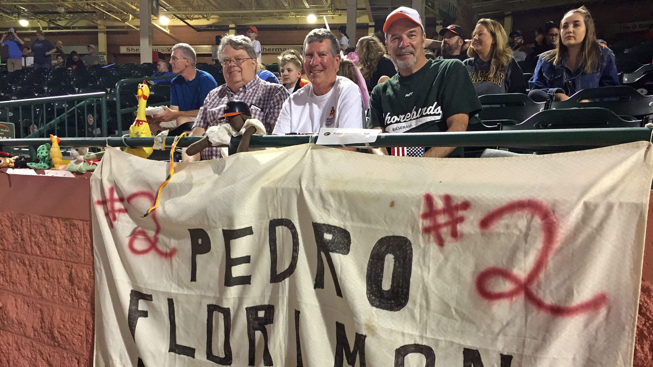 Bacon recruited a couple of like-minded fans who were willing to vociferously root for Florimon, and showed up to the ballpark one day (he doesn't remember exactly when) toting a spray-painted bedsheet bearing the words "Pedro Florimon Fan Club." He hung it from a railing in front of his front row second-level seats -- located on the first base side of the ballpark -- and that's how it all began. At any given ballgame, there was now a small group of fans dedicated to the message that No. 2 was No. 1