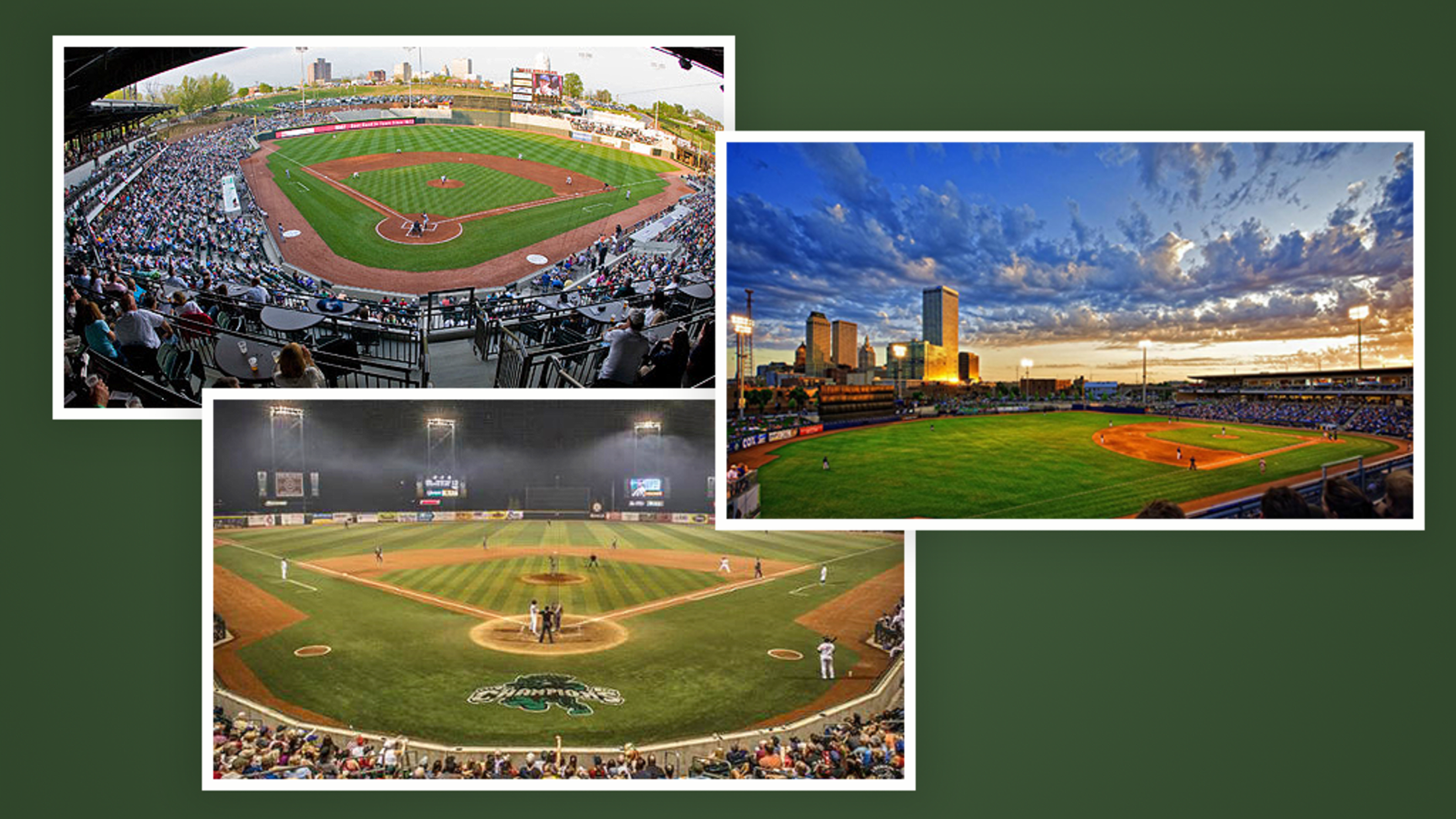 Clockwise from top: BB&T Ballpark, ONEOK Field, PK Park