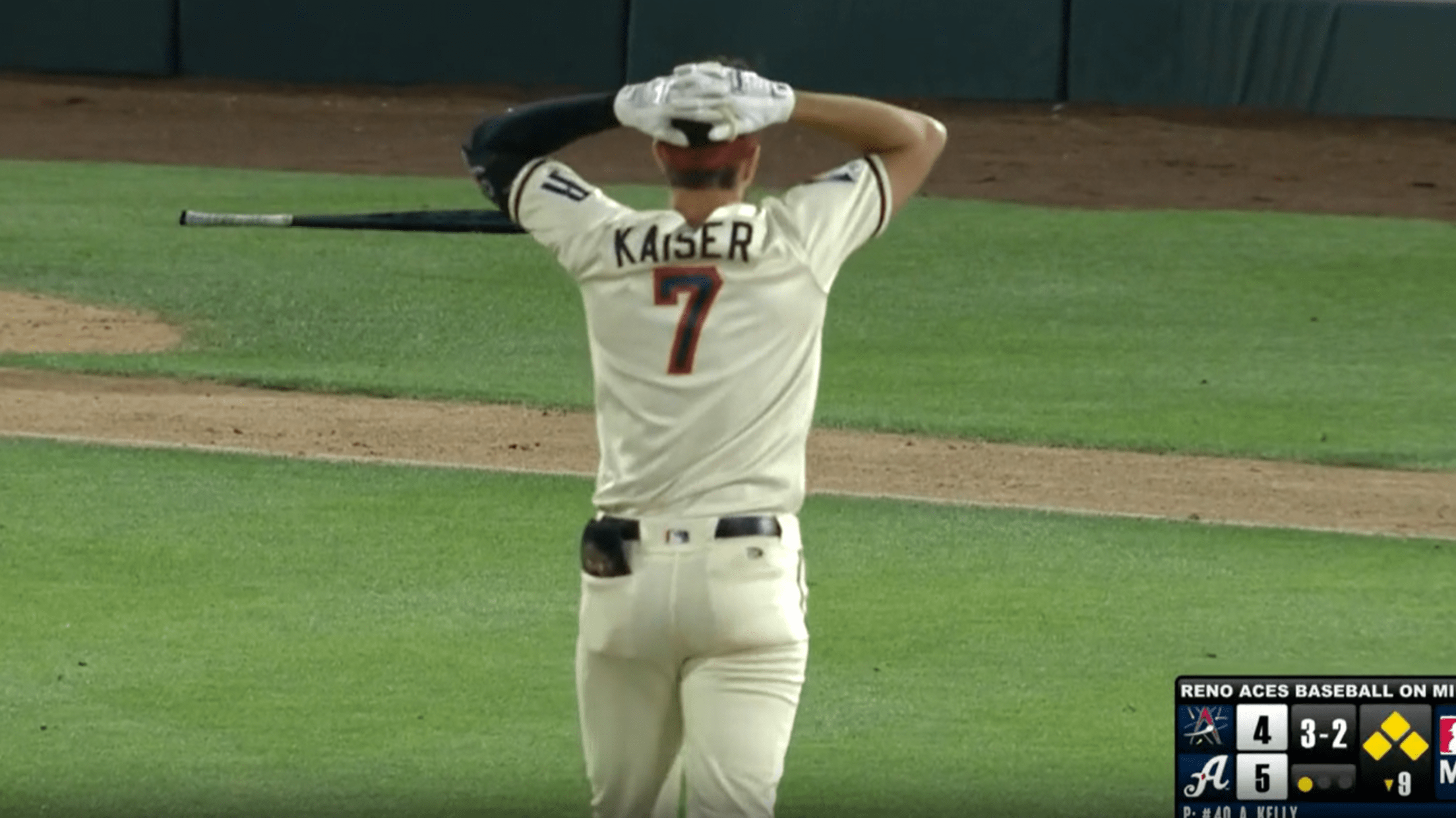 With Reno down, 4-3, in the bottom of the ninth inning, Connor Kaiser delivered a bases-loaded double to right-center field. The tying run scored from third, but as Cristian Pache -- who represented the winning run -- came around third and headed home, he was tripped up by one of his own teammates as Reno players stormed out of the dugout in jubilation.