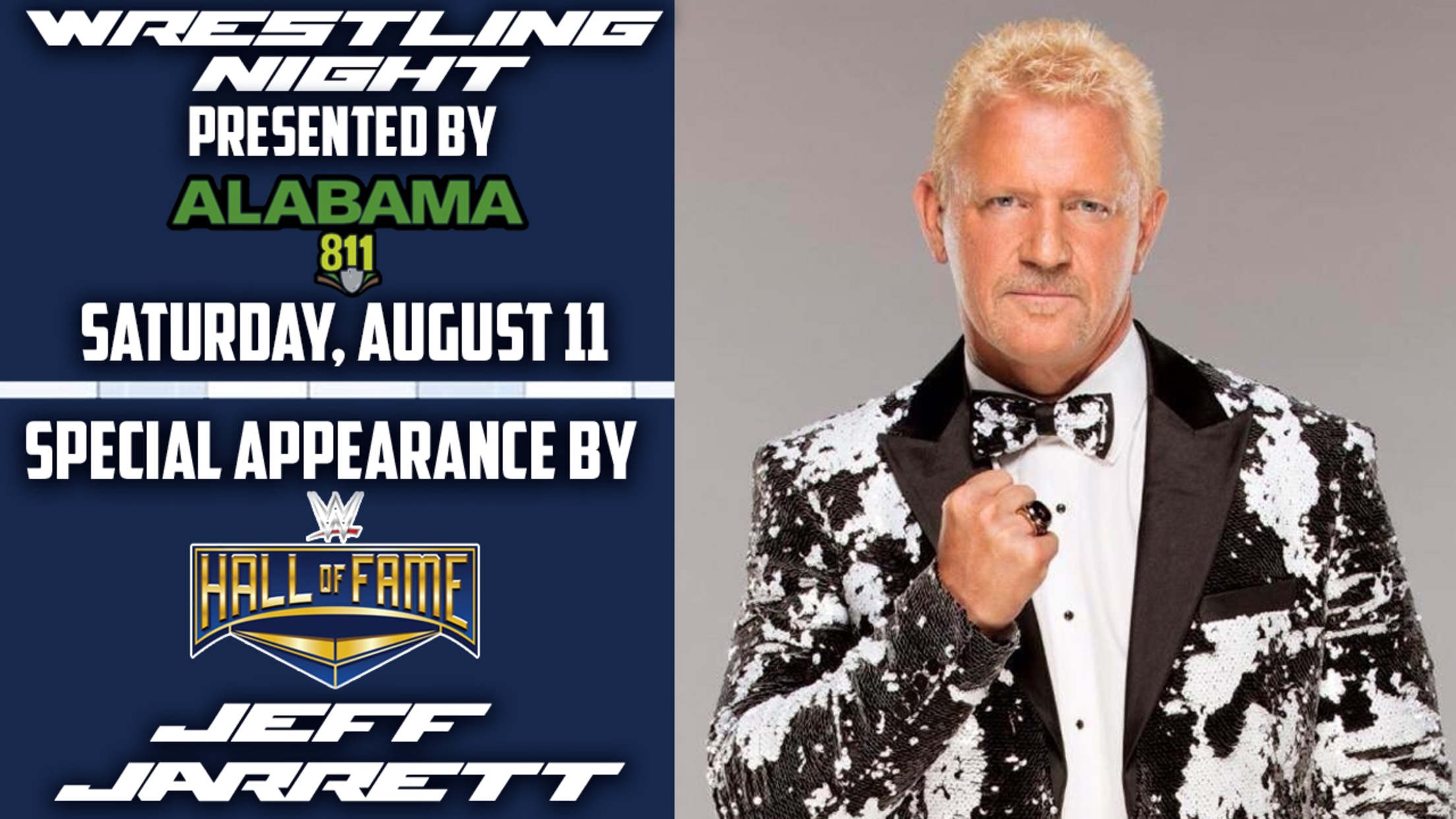 The Montgomery Biscuits welcome WWE Hall of Famer Jeff Jarrett to Riverwalk Stadium for Wrestling Night presented by Alabama 811 on Saturday, August 11 at 6:05pm.