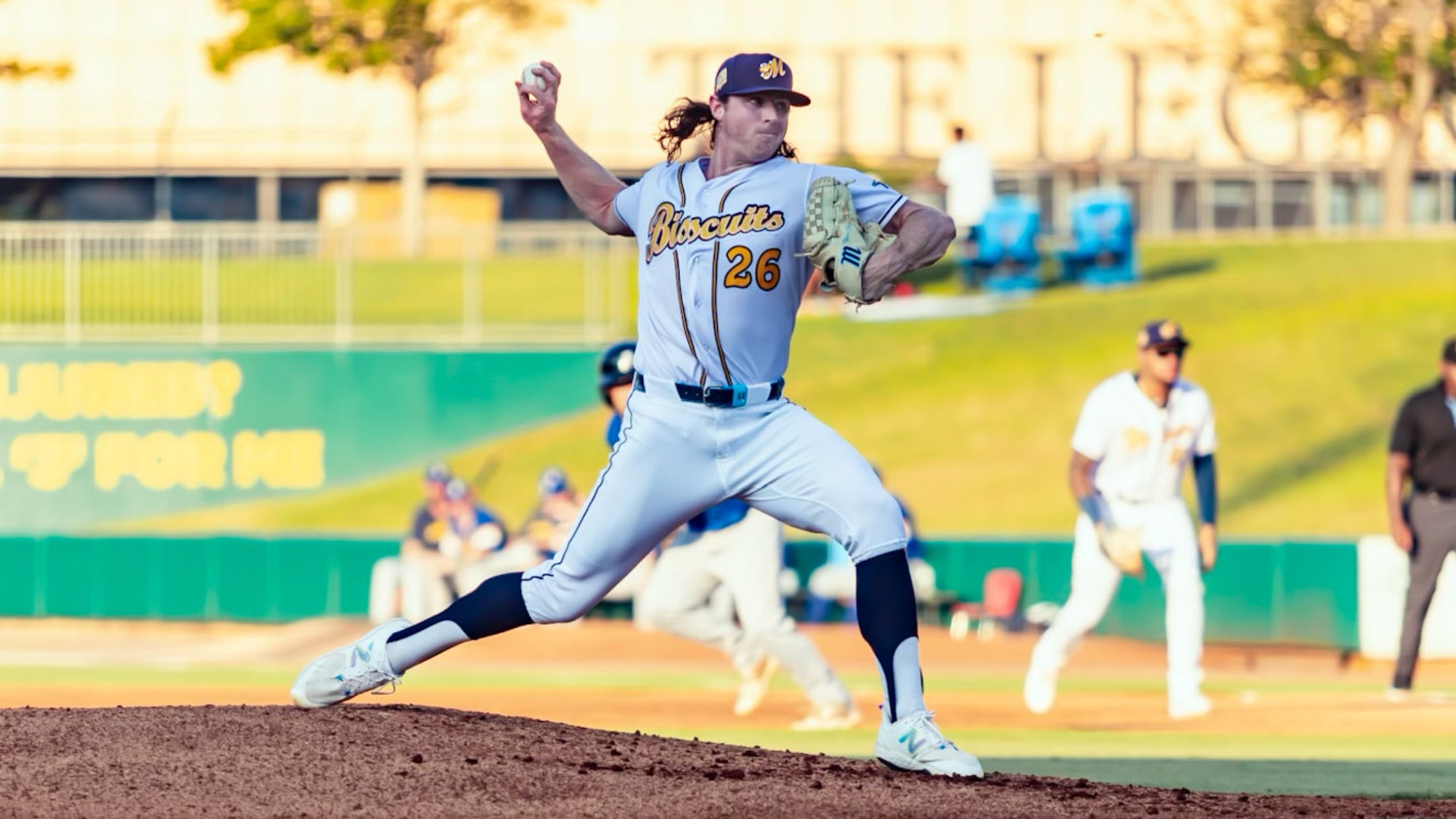 Photo by Matt Austin MONTGOMERY, AL - Ryan Pepiot made a rehab start and paved the way for the Montgomery Biscuits (61-46, 21-17) 1-0 win over the Biloxi Shuckers (53-51, 23-14) on Saturday night at Riverwalk Stadium. The pitching staff posted their fifth shutout win in the last 10 games.