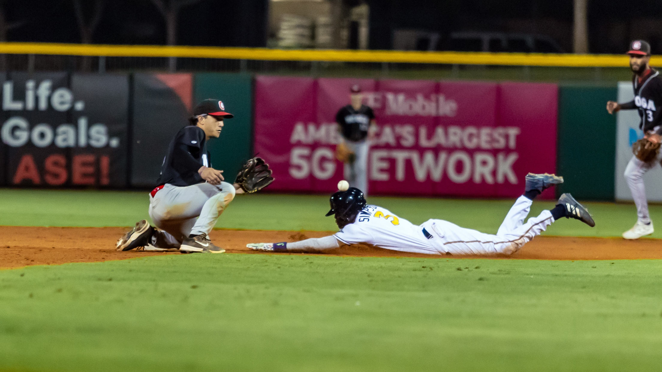 Photo by Matt Austin MONTGOMERY, AL - Chandler Simpson stole his 100th base to join a historic club, and the Montgomery Biscuits (77-54, 37-25) won their regular season home finale, 10-7, against the Chattanooga Lookouts (42-88, 22-39) on Sunday evening at Riverwalk Stadium. Simpson reached 100 stolen bases in the
