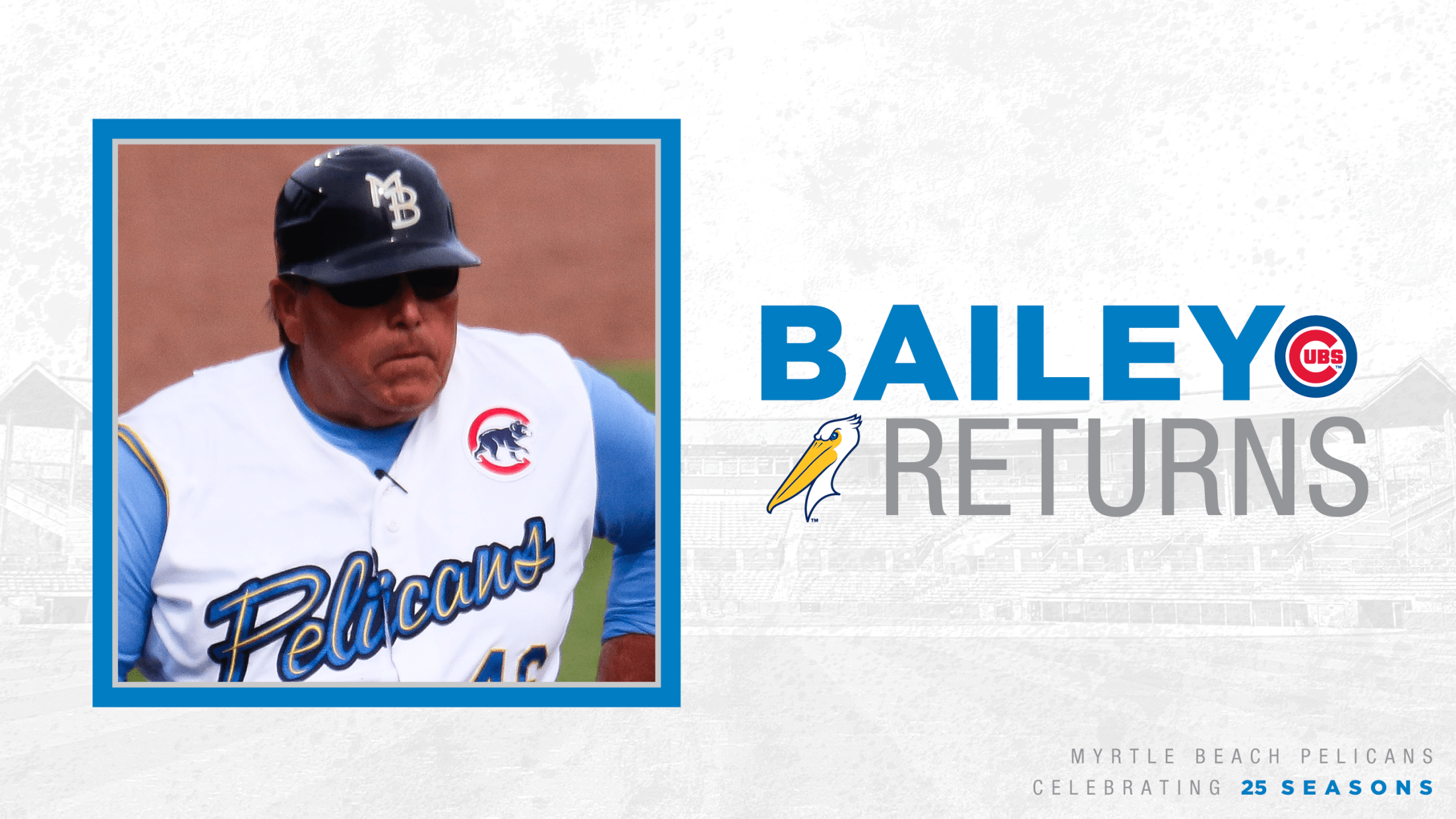 The Chicago Cubs and the Myrtle Beach Pelicans are pleased to announce that Buddy Bailey will return to manage the Birds for a 7th season, marking his 36th as a minor league manager. Bailey is the winningest active minor league manager with 2,357 regular season victories. In each of the