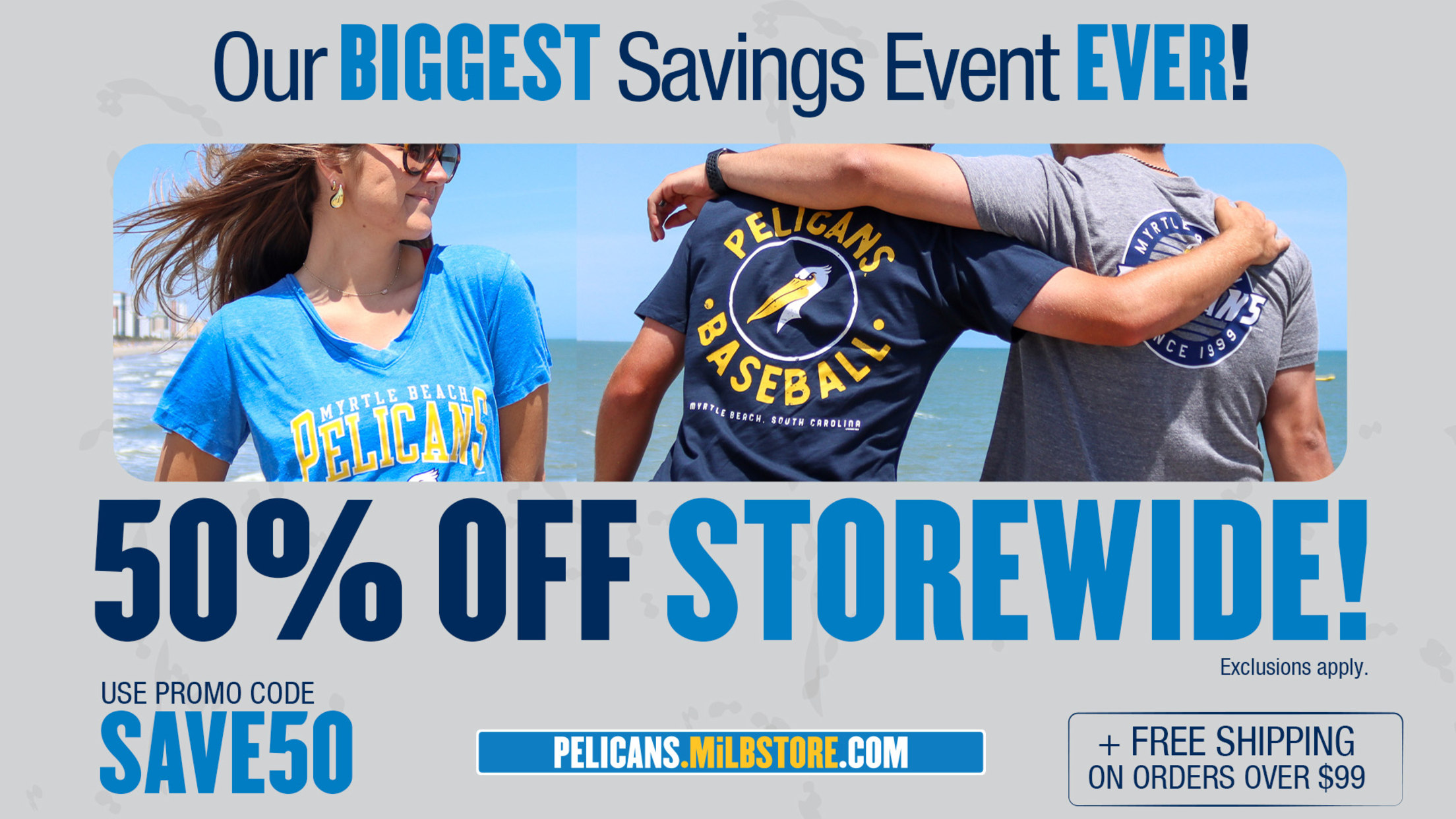 Shop and save with our BIGGEST Merch Sale Ever! Go online (or come into the store) and use promo code SAVE50 to unlock 50% OFF* of your purchase! Plus, get FREE SHIPPING on orders over $99. But that's not all...save 25% on all on-field caps! Click here to shop now.
