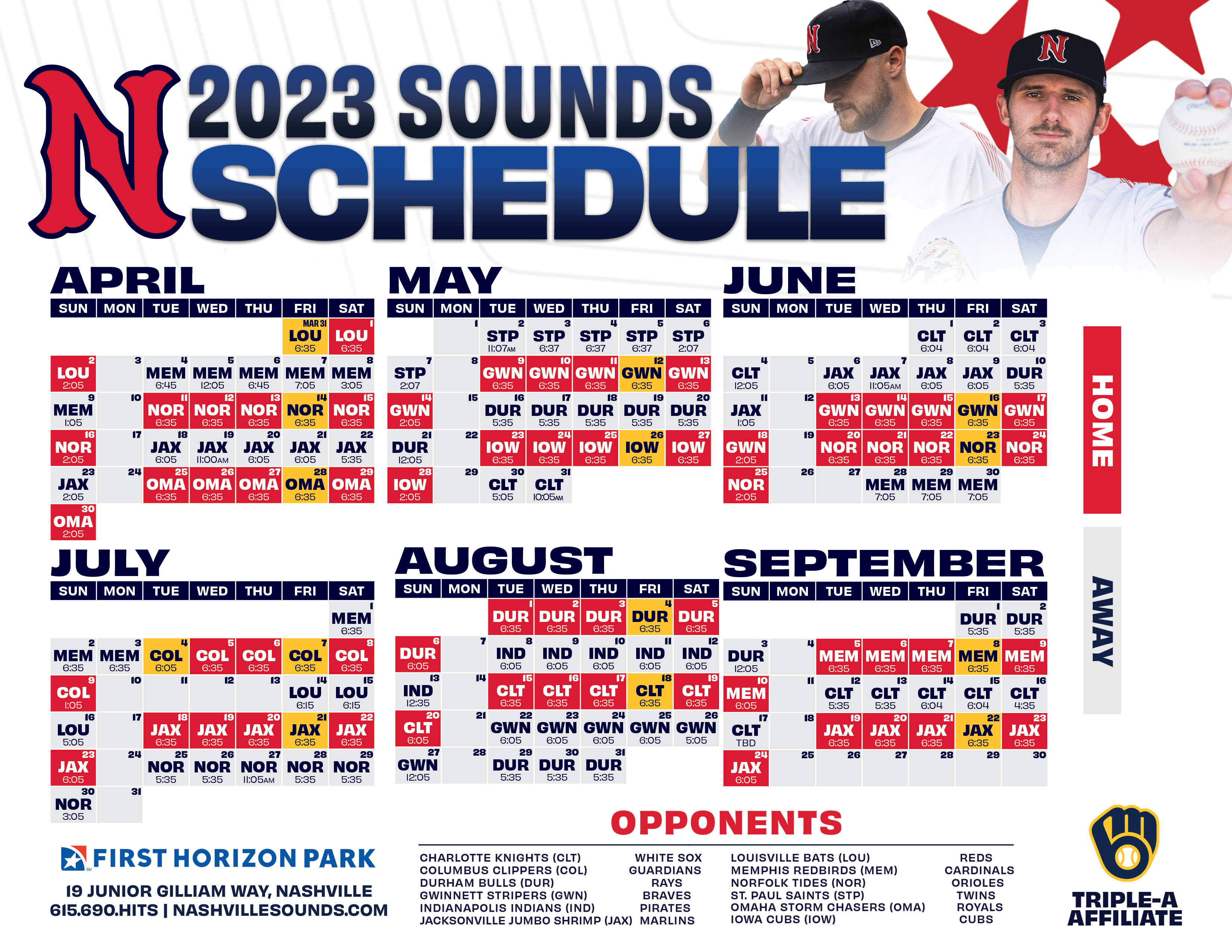 The Sounds will play ball in Nashville again on Tuesday, May 11 vs. the Memphis Redbirds. In addition, the club is set to host the Atlanta Braves affiliate twice this season.