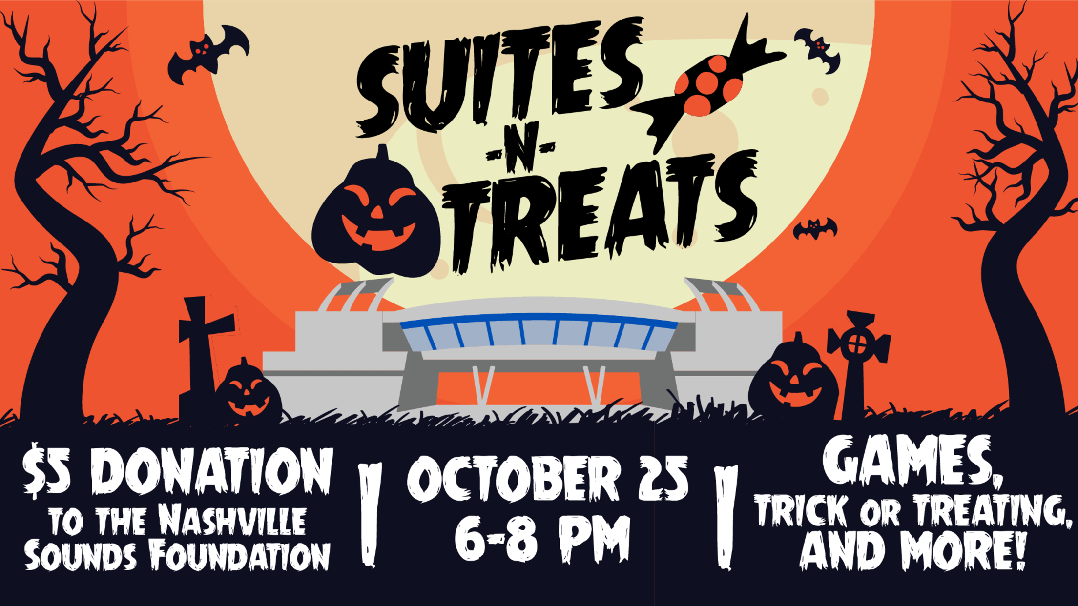 The Nashville Sounds Foundation announced the return of its kid-friendly, Halloween-themed Suites-N-Treats event at First Horizon Park on Tuesday, October 25 from 6:00-8:00 p.m.