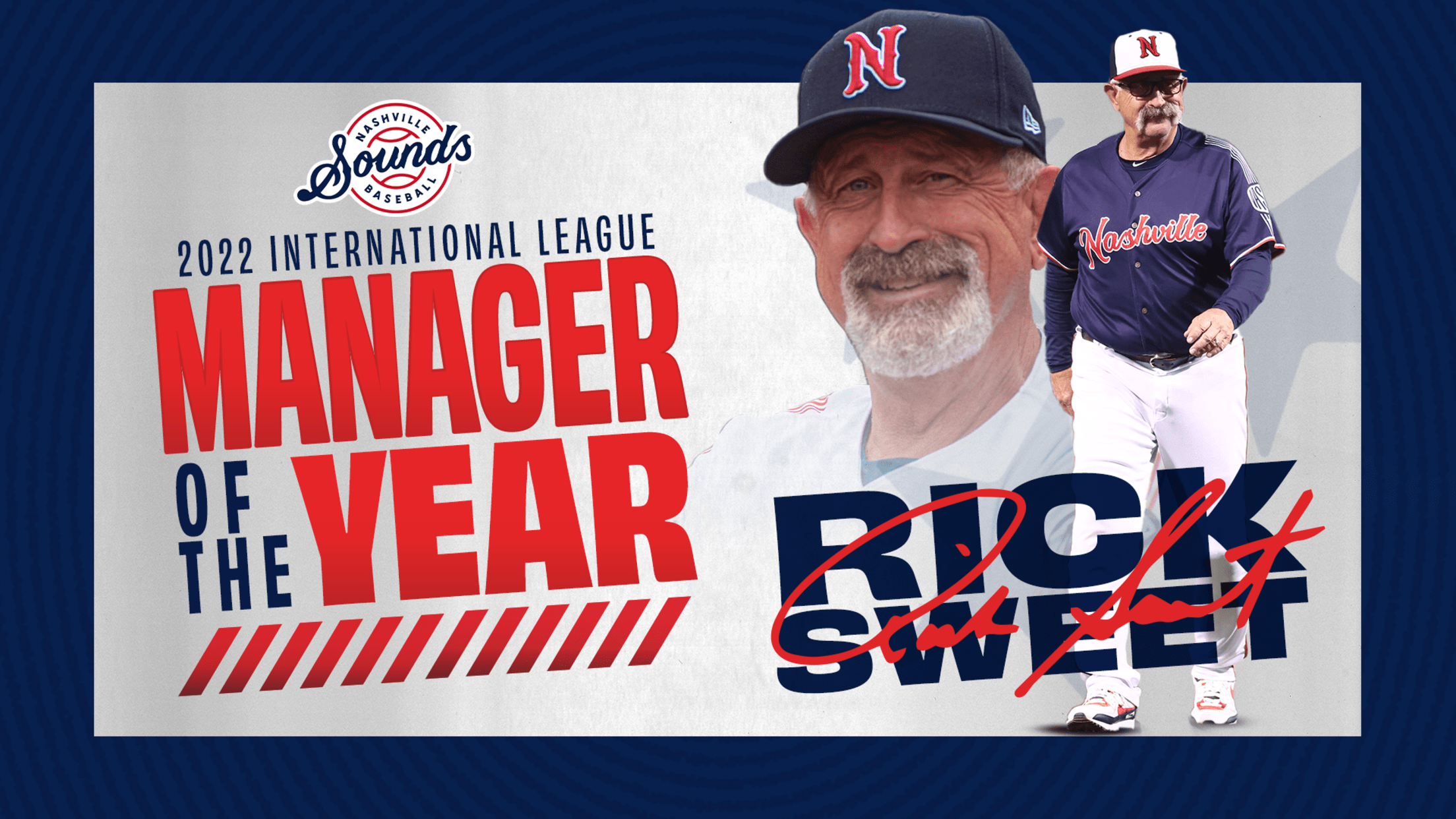 Sweet is the sixth Sounds manager in franchise history to garner a Manager of the Year award. Prior winners include Steve Scarsone in 2016 (Pacific Coast League Manager of the Year), Frank Kremblas in 2007 (PCL Manager of the Year), Rick Renick in 1996 and 1993 (American Association Manager of the Year) and Carl “Stump” Merrill in 1980 (Southern League Manager of the Year).