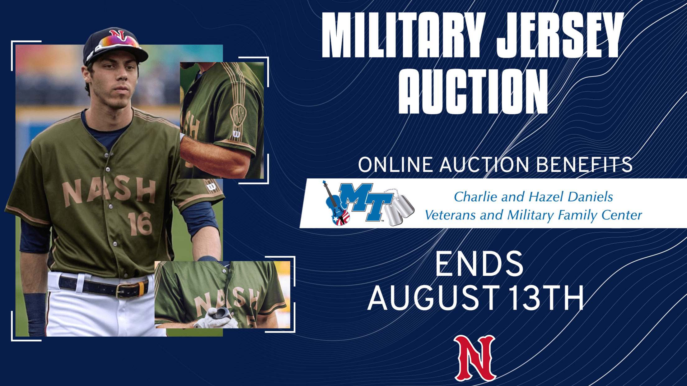 The Nashville Sounds Baseball Club announced today an online auction of their game-used Military Appreciation Jerseys to benefit the Charlie and Hazel Daniels Veterans and Military Family Center at Middle Tennessee State University. The auction begins today and runs until Friday, Aug. 13 at 6:00 p.m.