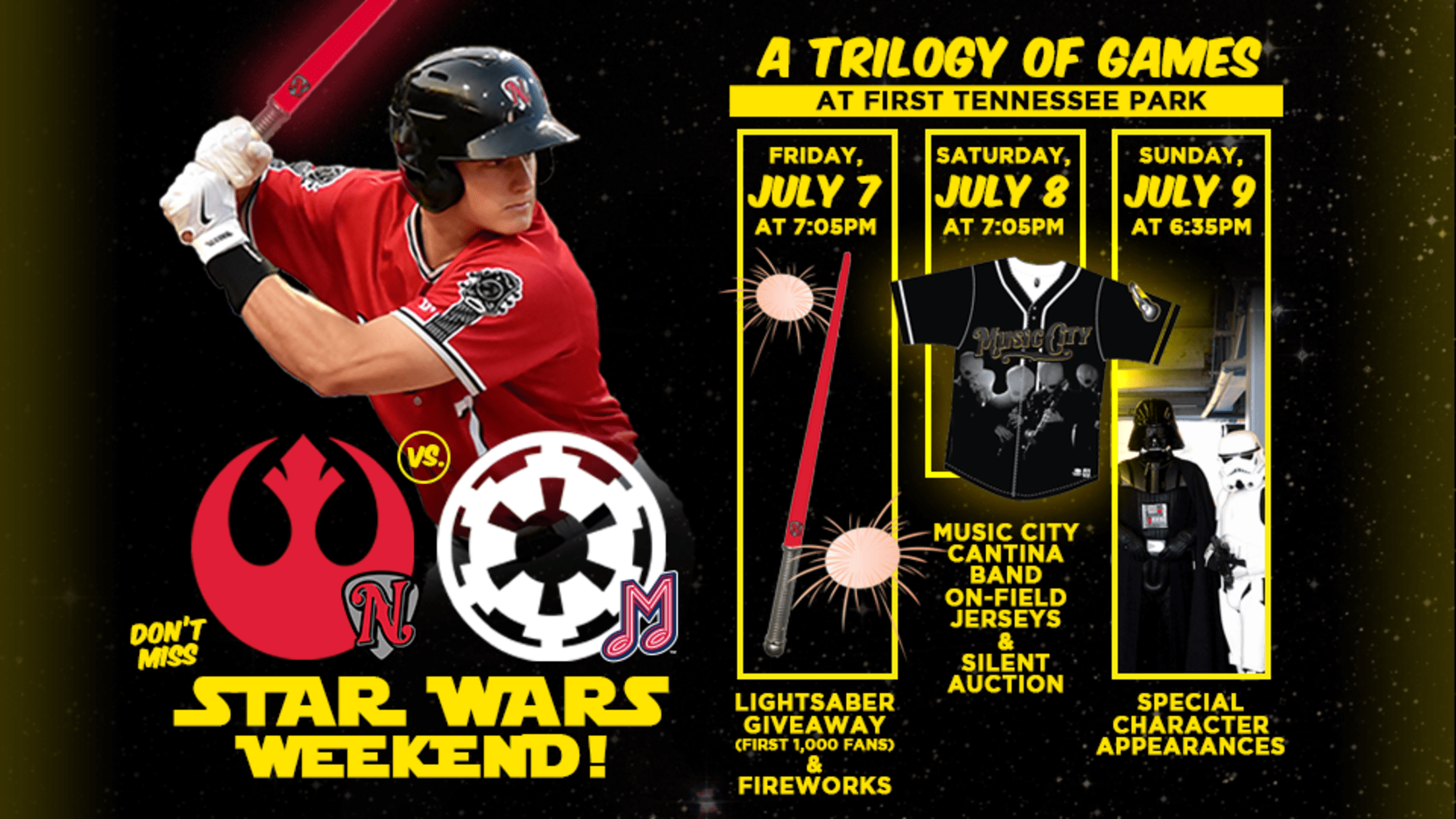 • FOX17 post-game fireworks presented by Koorsen Fire & Security. Enjoy the fireworks with a custom Star Wars playlist.