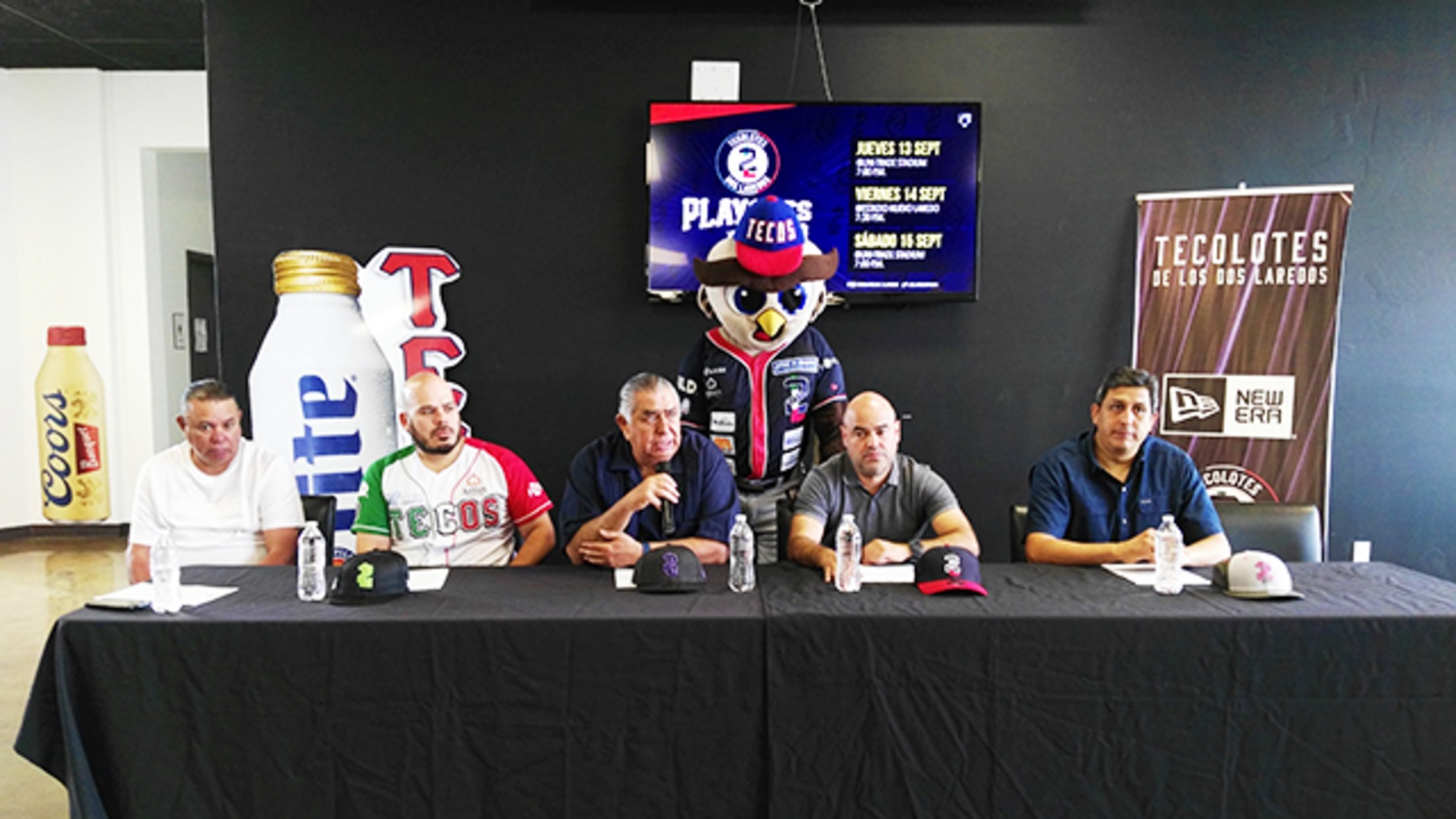 Laredo, Tx. (www.tecolotes2laredos.com / Juan Alanís) 8 de septiembre.- Este viernes, el Club de Beisbol Tecolotes de los Dos Laredos, ofreció una rueda de prensa presentando los pormenores del equipo previo al inicio del primer playoff de la Temporada de Otoño, donde se verá las caras con Acereros del Norte.Encabezada