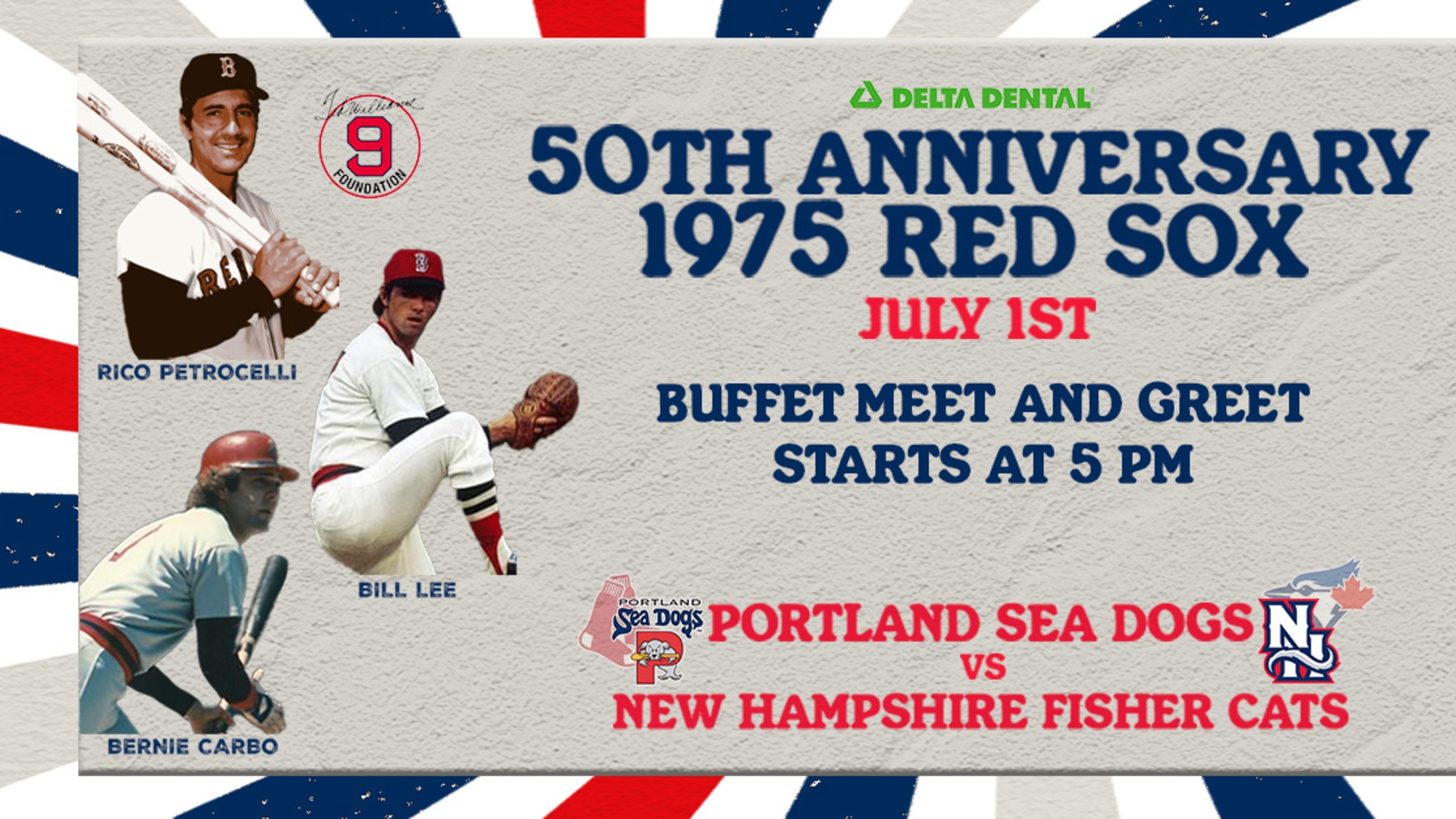 MANCHESTER, NH – Partnering with the Ted Williams Museum and Delta Dental, the New Hampshire Fisher Cats are set to host a 1975 Red Sox Celebration, commemorating the 50th anniversary of the 1975 Boston Red Sox season, on Tuesday, July 1 at Delta Dental Stadium. Red Sox legends Rico Petrocelli,