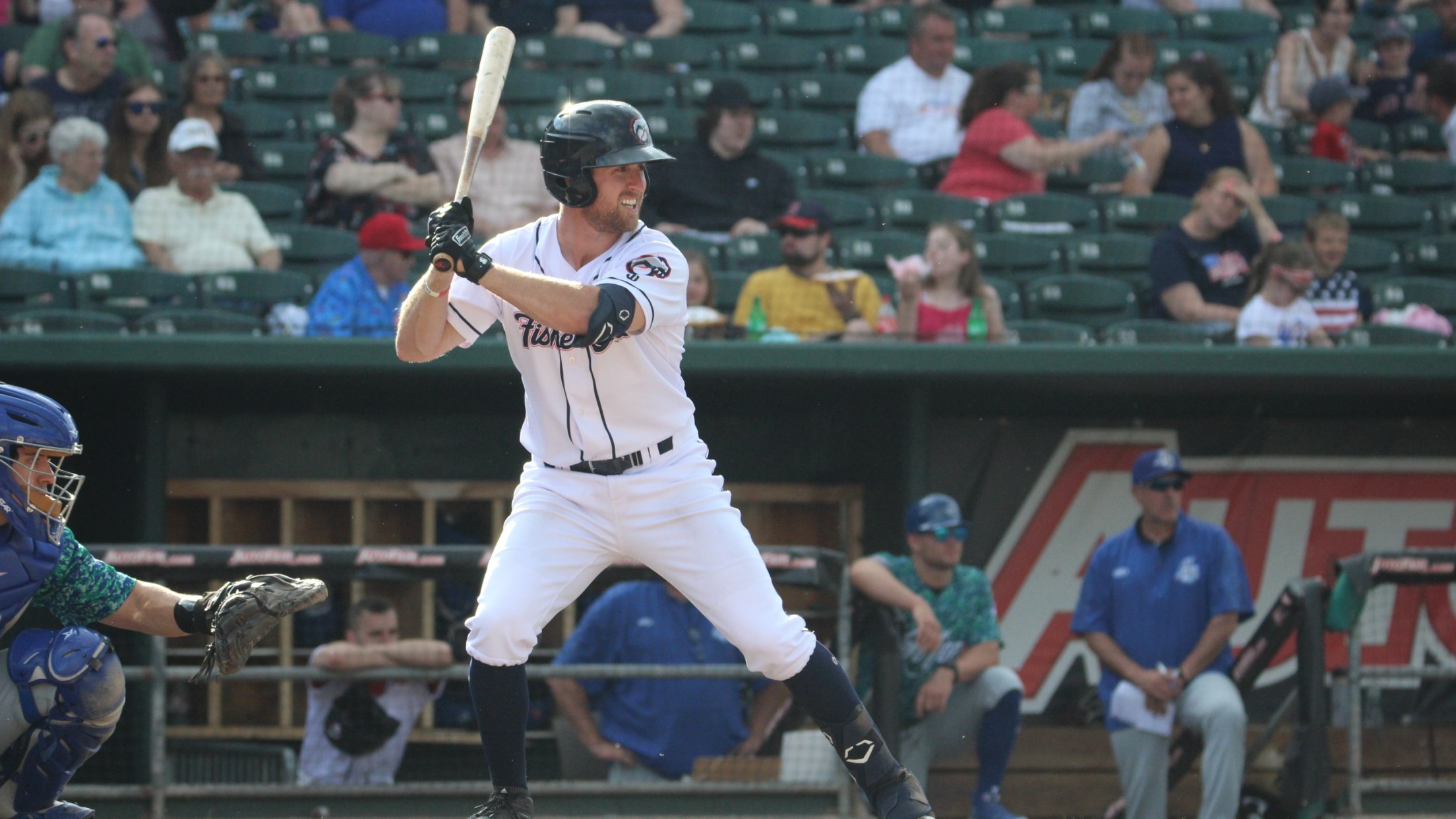 Patrick Kivlehan made Fisher Cats history with five hits on Memorial Day. (Christina Carrillo)