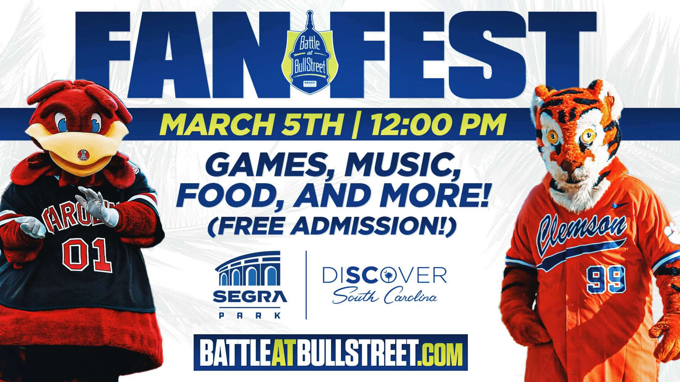 COLUMBIA, SC – The Columbia Fireflies, in conjunction with Experience Columbia SC Sports, have released the details of the Battle at BullStreet Fan Fest presented by Discover South Carolina which is taking place on the Segra Park Plaza in the BullStreet District prior to the game on March 5. The