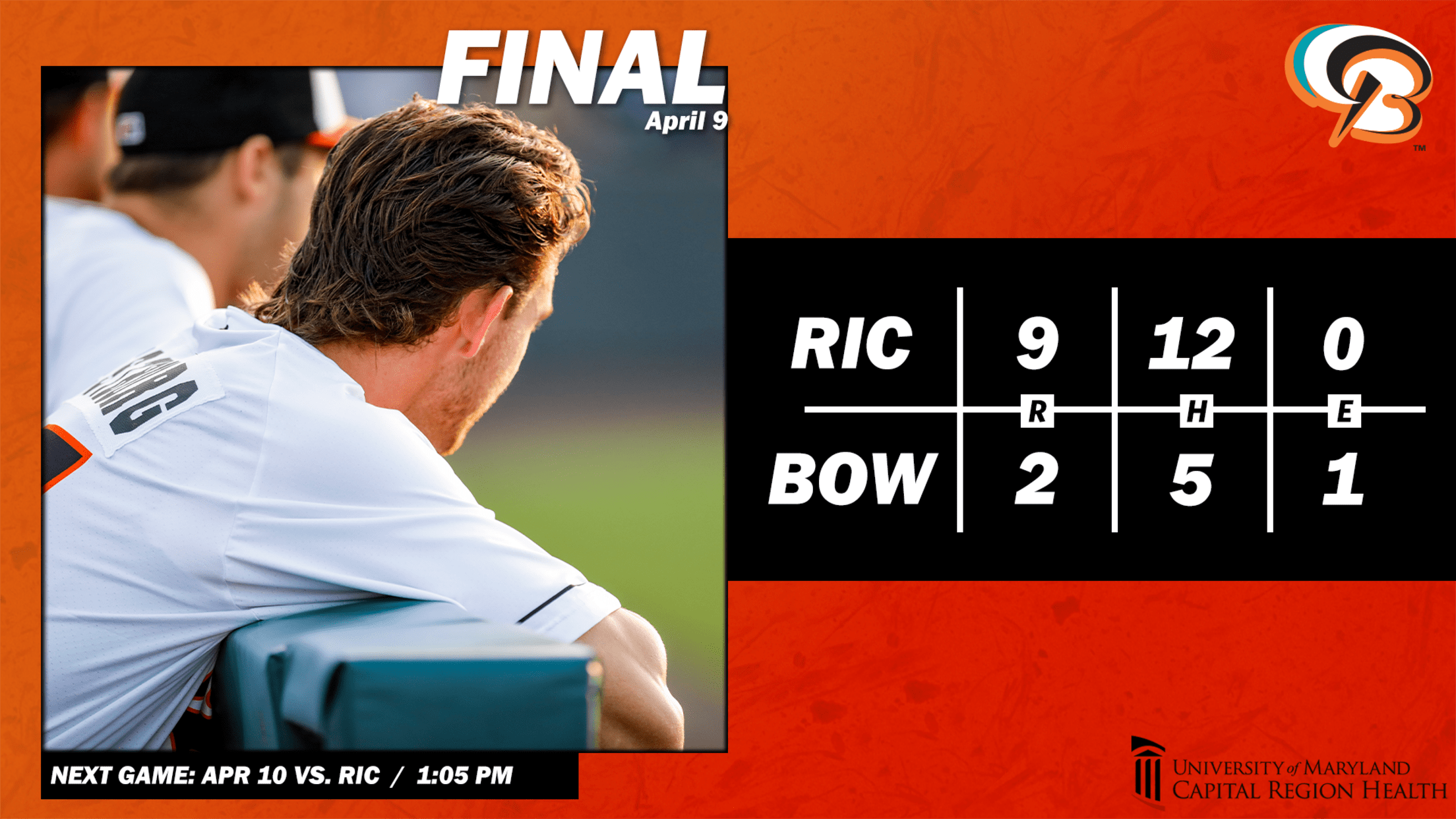 BOWIE, MD – The Bowie Baysox were dealt another loss to open their season on Saturday afternoon when the Richmond Flying Squirrels staged a big ninth-inning rally to secure a 9-2 final. With the game tied at two in the last frame, Richmond plated seven runs against two Bowie relievers to put the game out of reach.