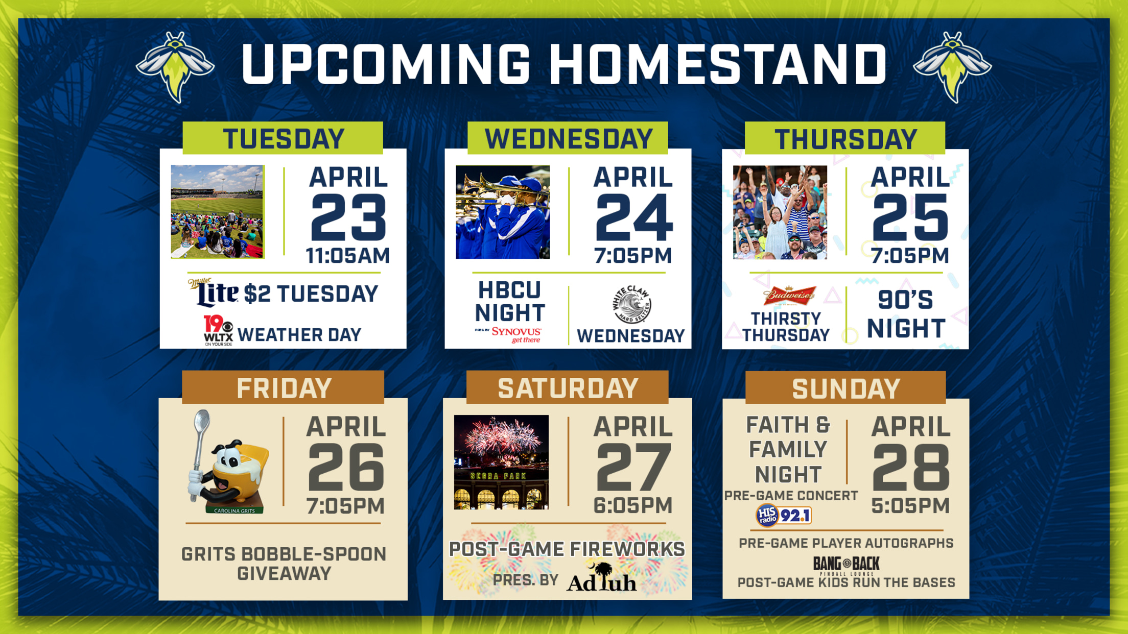 HBCU Night Presented by Synovus Bank: It’s back for a second year! Join the Benedict College marching band, who will perform as you enter the gates at Segra Park for HBCU night presented by Synovus Bank. Get into the feel of attending an HBCU sporting event at Segra Park as we pay homage to our neighbors on Harden Street and all local HBCUs. It’s also Malmo Oat Milkers night. The Fireflies will don Oat Milkers jerseys in partnership with Oatly. One fan will throw out a first milk carton “pitch” and 50 fans will win a swag kit, courtesy of Oatly.