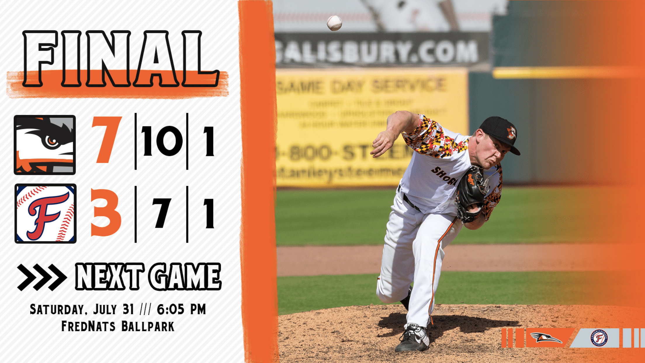 FREDERICKSBURG, VA - After surging out to an early lead, the Delmarva Shorebirds survived a late surge and defeated the Fredericksburg Nationals 7-3 on Friday night at FredNats Ballpark.