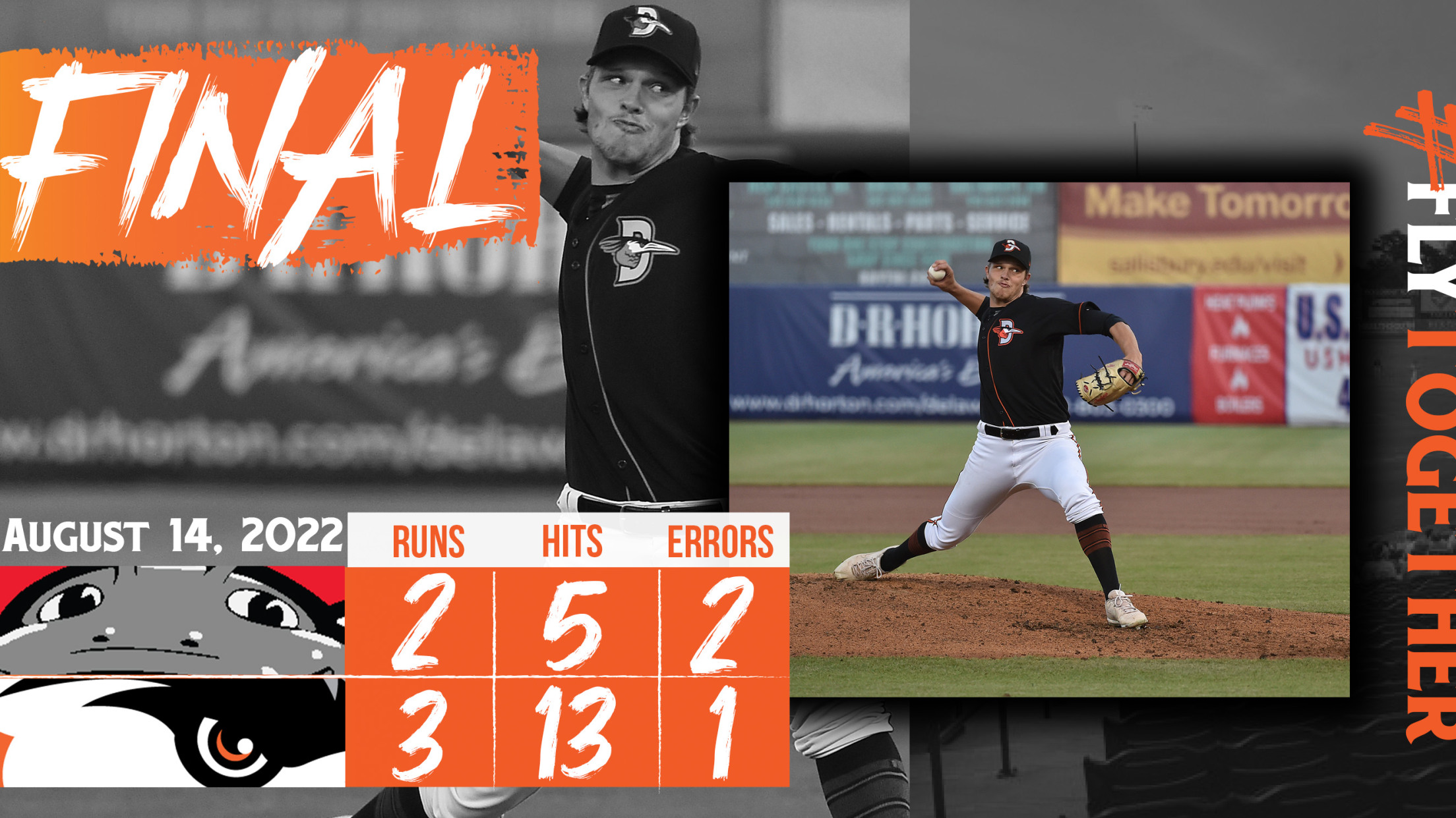 SALISBURY, MD. – After being shut out for the first five innings, the Delmarva Shorebirds rallied from behind to defeat the Carolina Mudcats 3-2 on Sunday evening at Arthur W. Perdue Stadium.