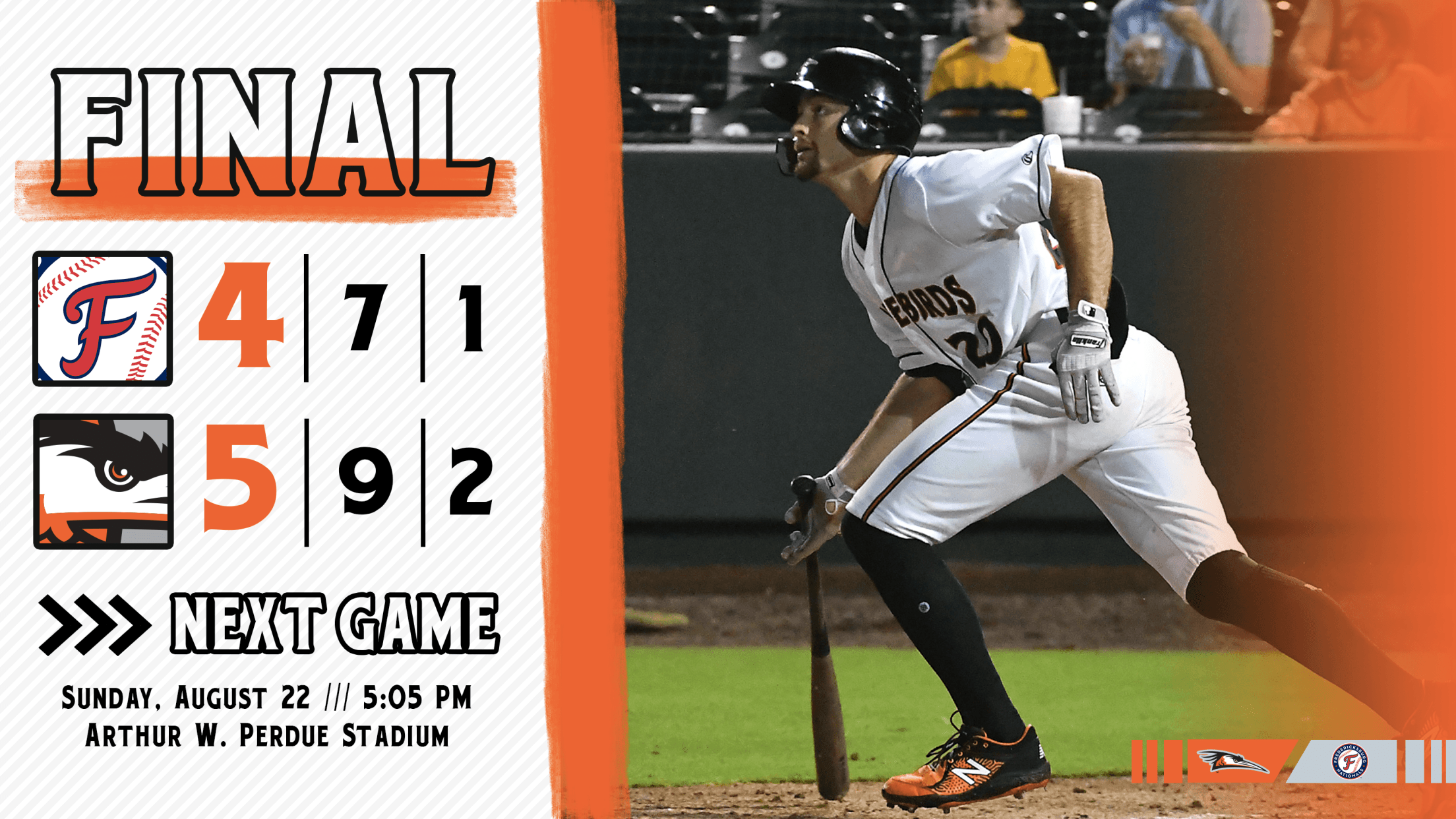 The Shorebirds go for the clean series sweep against the FredNats on Sunday, August 22. Ty Blach (0-0, 0.00) goes for the Shorebirds against Karlo Seijas (3-11, 6.32) for the Nationals. First pitch is slated for 5:05 p.m. with pregame coverage starting at 4:50 p.m. on MiLB.TV and Fox Sports 960 AM with Sam Jellinek on the call.