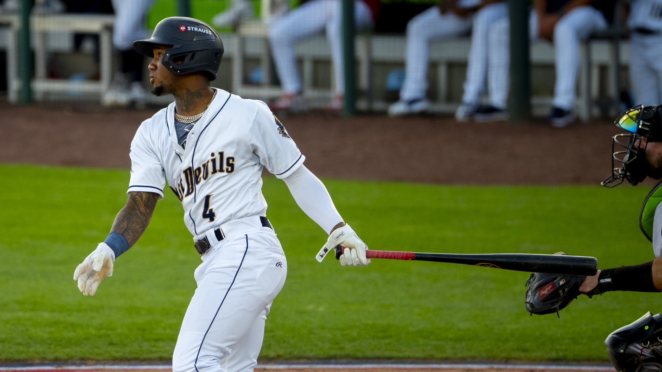 Tri-City trailed 4-0 going to the bottom of the 5th inning. 3B Caleb Bartolero led off with a single to right, and C Peter Burns drew a walk to give the Dust Devils runners at first and second. LF Gage Harrelson then sent a bunt down the third base line that pressured Hillsboro 3B Yassel Soler to field cleanly and make a quick, accurate throw. Soler did the former but not the latter, with his throw wide of first allowing Bartolero to score from third.