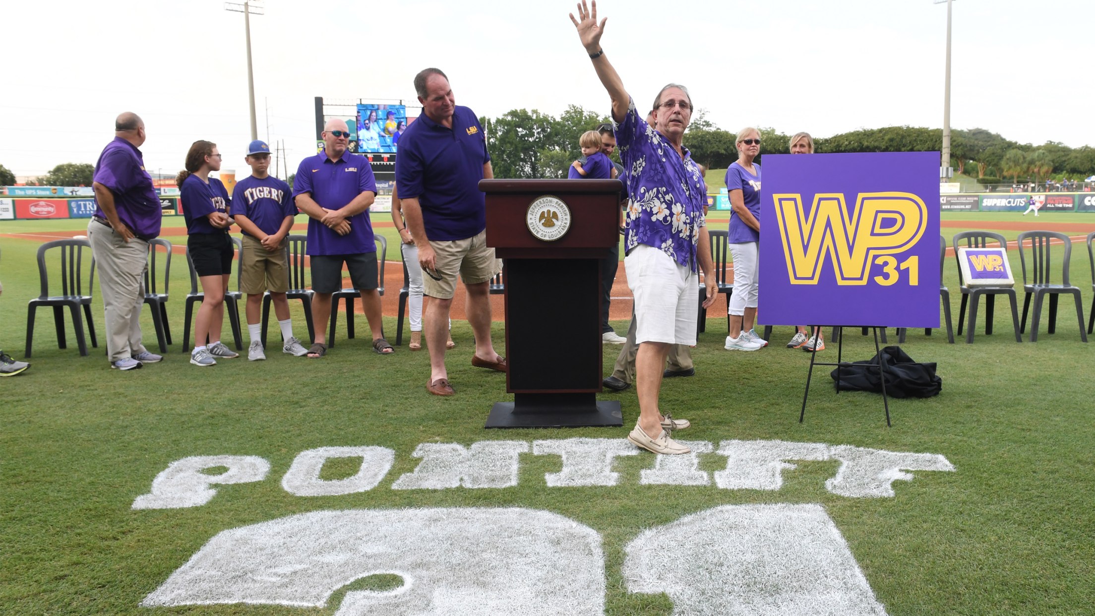 In honor of Wally Pontiff, Jr., who wore number 31 as an All-American third baseman at LSU prior to his sudden passing in 2002, the 'Cakes retired the jersey in a pregame ceremony which was attended by Pontiff's family, friends, and former teammates. The Shrine on Airline had hosted the Pontiff Classic in March, the 15th consecutive year LSU played a game in Pontiff's native Metairie.