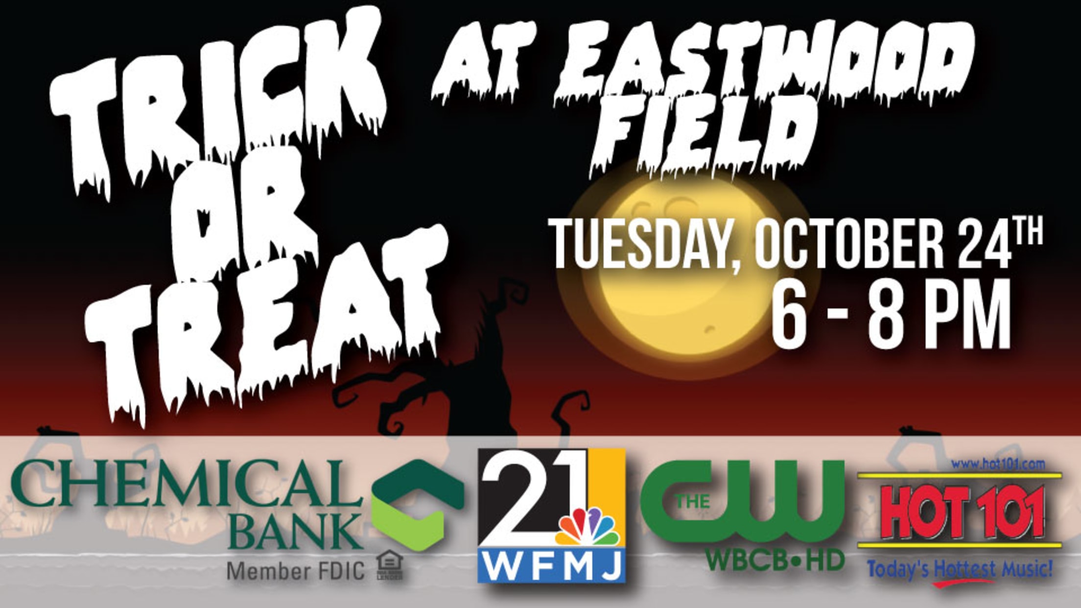 The Scrappers and Chemical Bank present the nineteenth annual "Trick or Treat" at Eastwood Field, with media partners 21 WFMJ, WBCB, and Hot 101. The event will take place Tuesday, October 24th from 6:00pm to 8:00pm. "Trick or Treat" at Eastwood Field is a fun and safe way to celebrate Halloween for children age 12 and under.