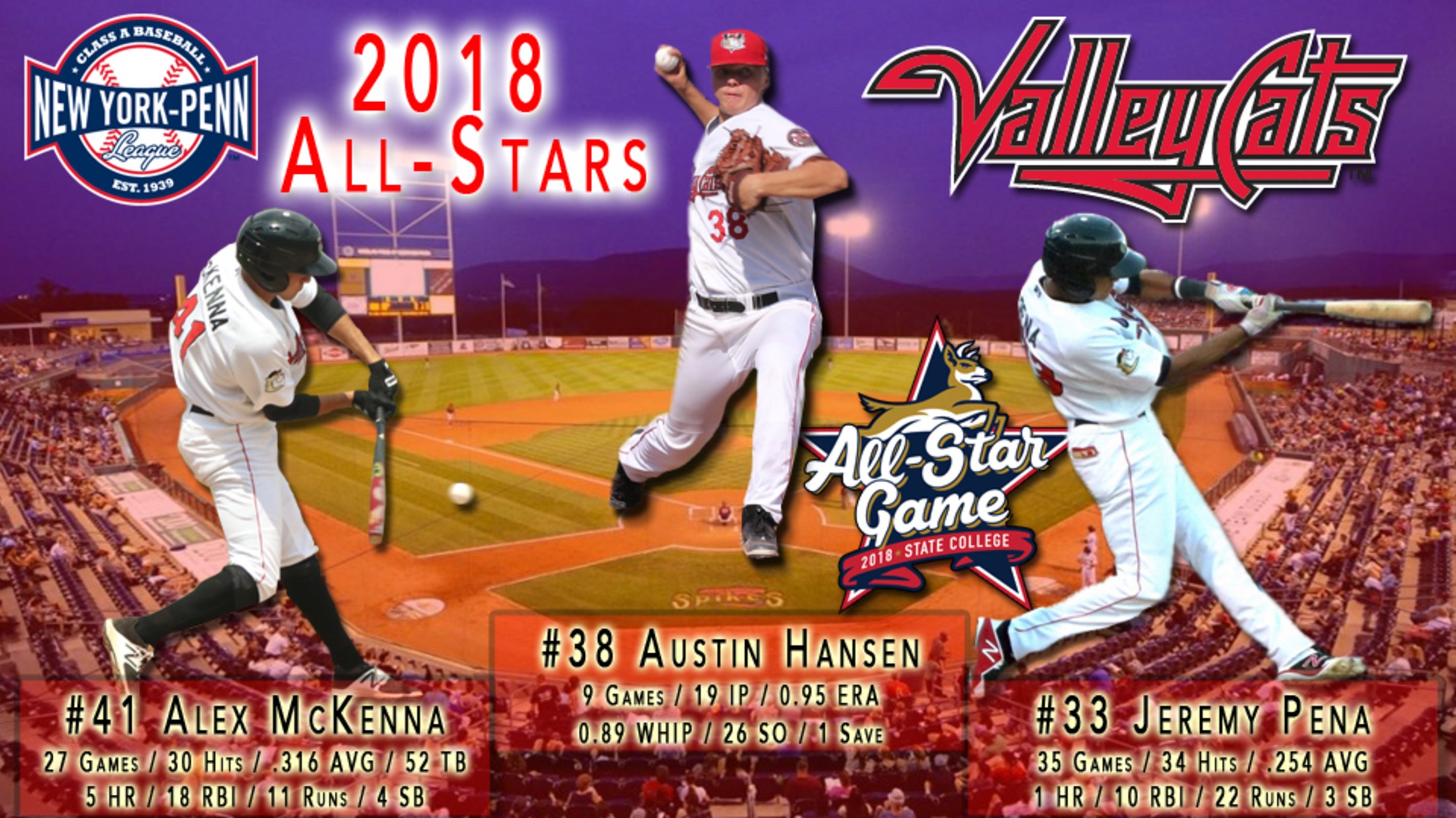 TROY, NY -- The New York-Penn League All-Star Game rosters were revealed on Tuesday afternoon, and the North team includes ValleyCats pitcher Austin Hansen, infielder Jeremy Pena and outfielder Alex McKenna.
