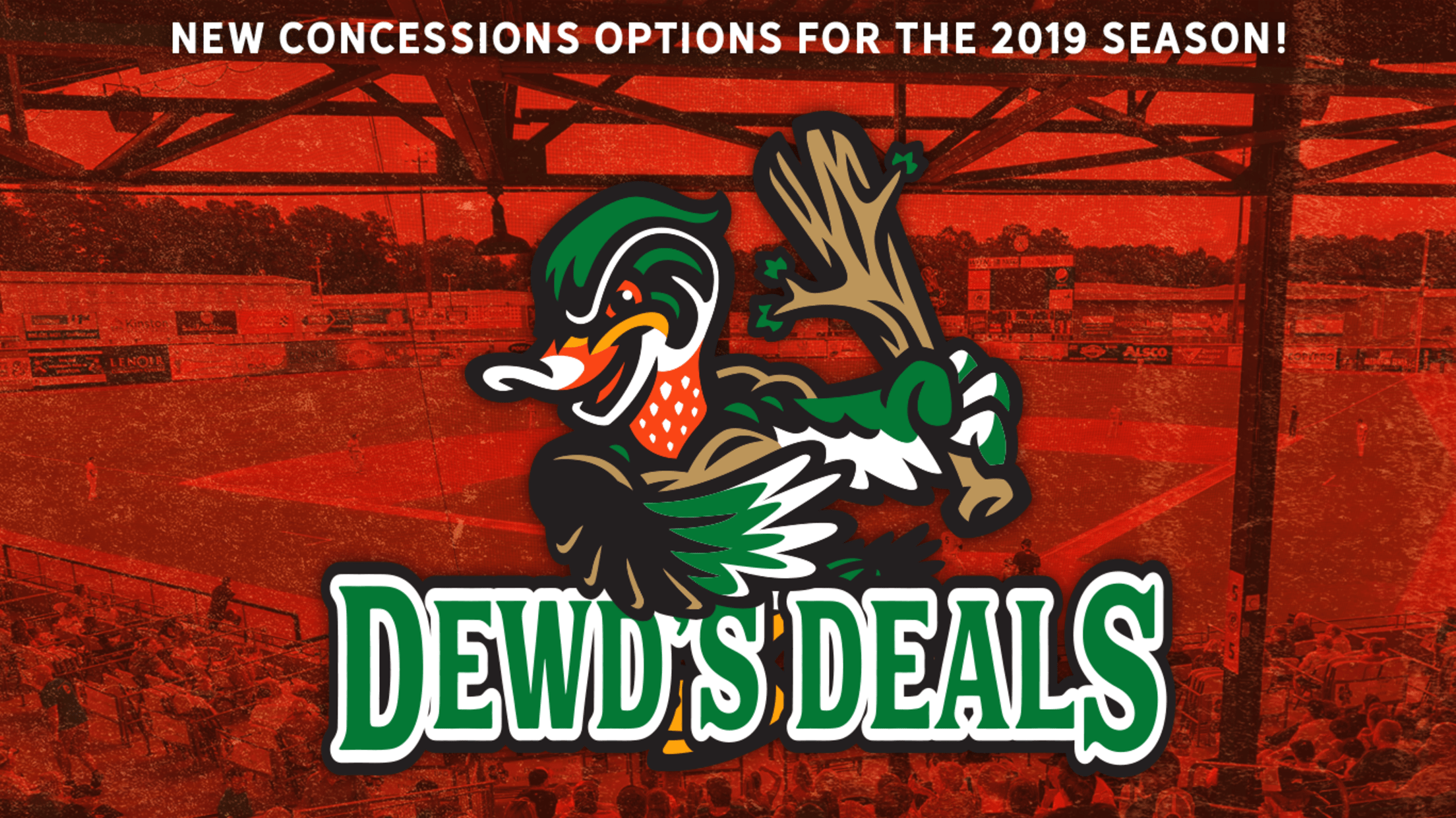The items that have been reduced in price are part of the new "DEWD's Deals" menu which will also feature some new lower priced items including a Chicken Tender Sandwich ($3.25), a Meatball Slider ($3.25), and 16 oz Natural Light and Busch Light can beer ($4). Last season the average price of 16 oz can beer was $5.50. The Wood Ducks also announced that all Thirsty Thursday games will feature 12 oz cans of Natural Light and Busch Light for $1. Prior season have featured a 10 oz draft for $1.