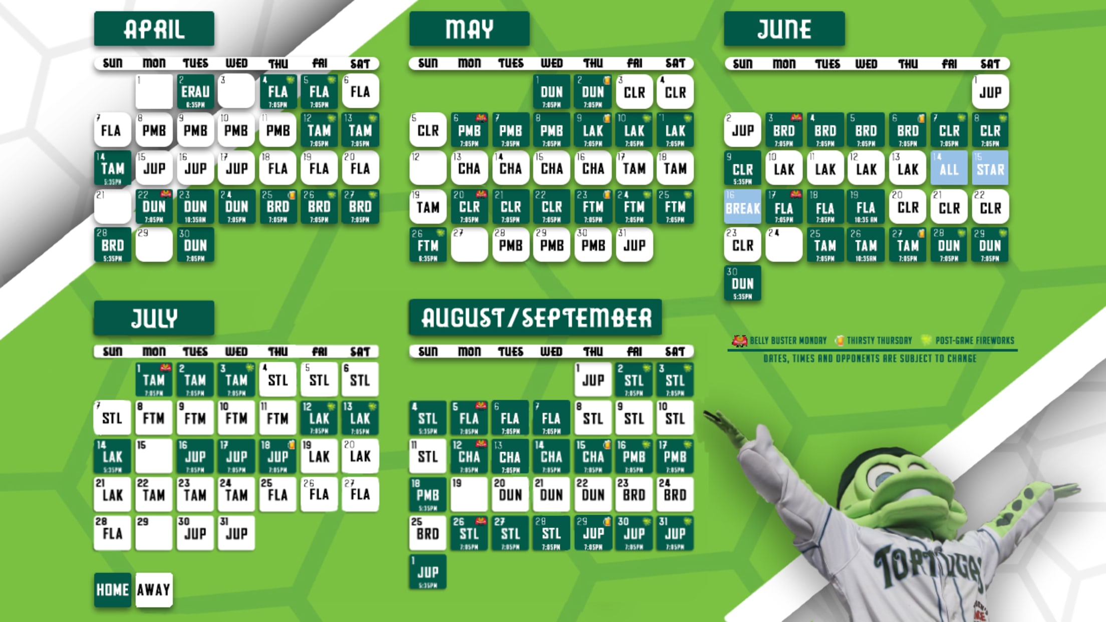 The Tortugas are also coming off of back-to-back Florida State League promotional awards and 2019 will be no different. The promotional calendar is set to be released on Monday, January 14th and will include some unforgettable nights at Jackie Robinson Ballpark.