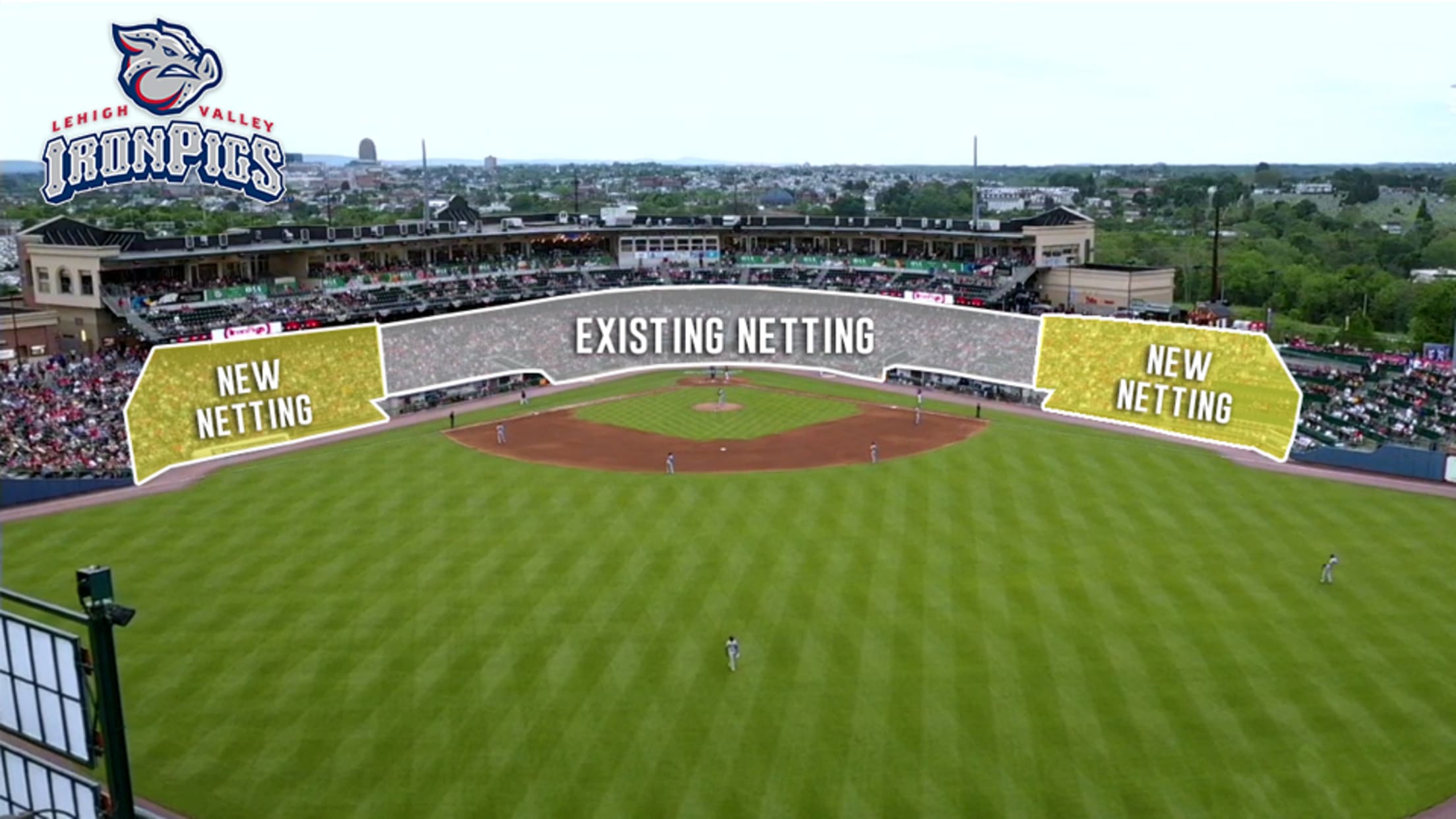 The Lehigh Valley IronPigs will extend the protective netting farther down both the first- and third-base lines at Coca-Cola Park. The netting will now provide protection for mostly every seat in the lower seating bowl. The installation is scheduled to be completed by Opening Day.