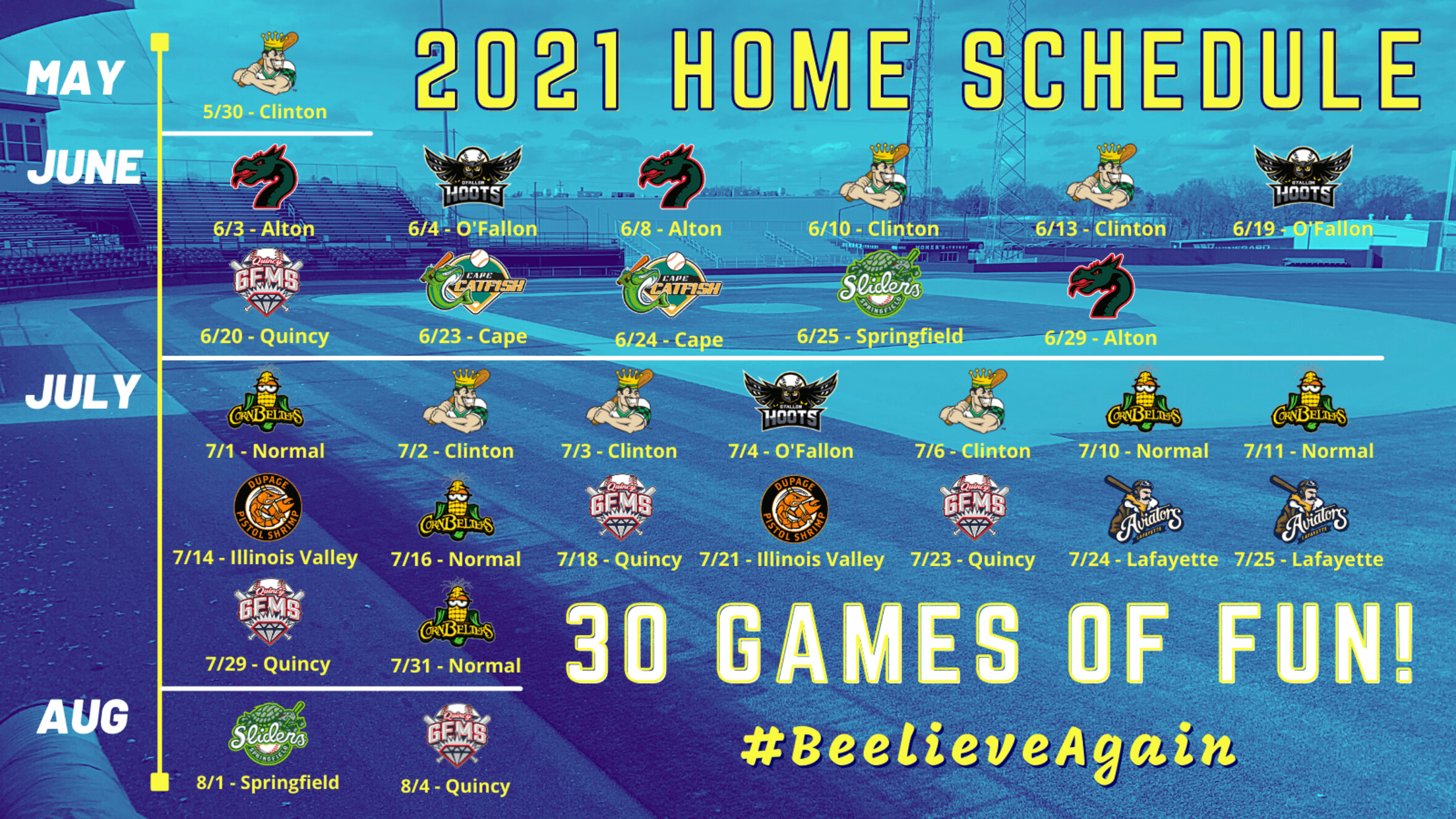 The Bees will compete in 30 Prospect League contests at Community Field in Burlington in addition to a 30 road games against their fellow Western League opponents.