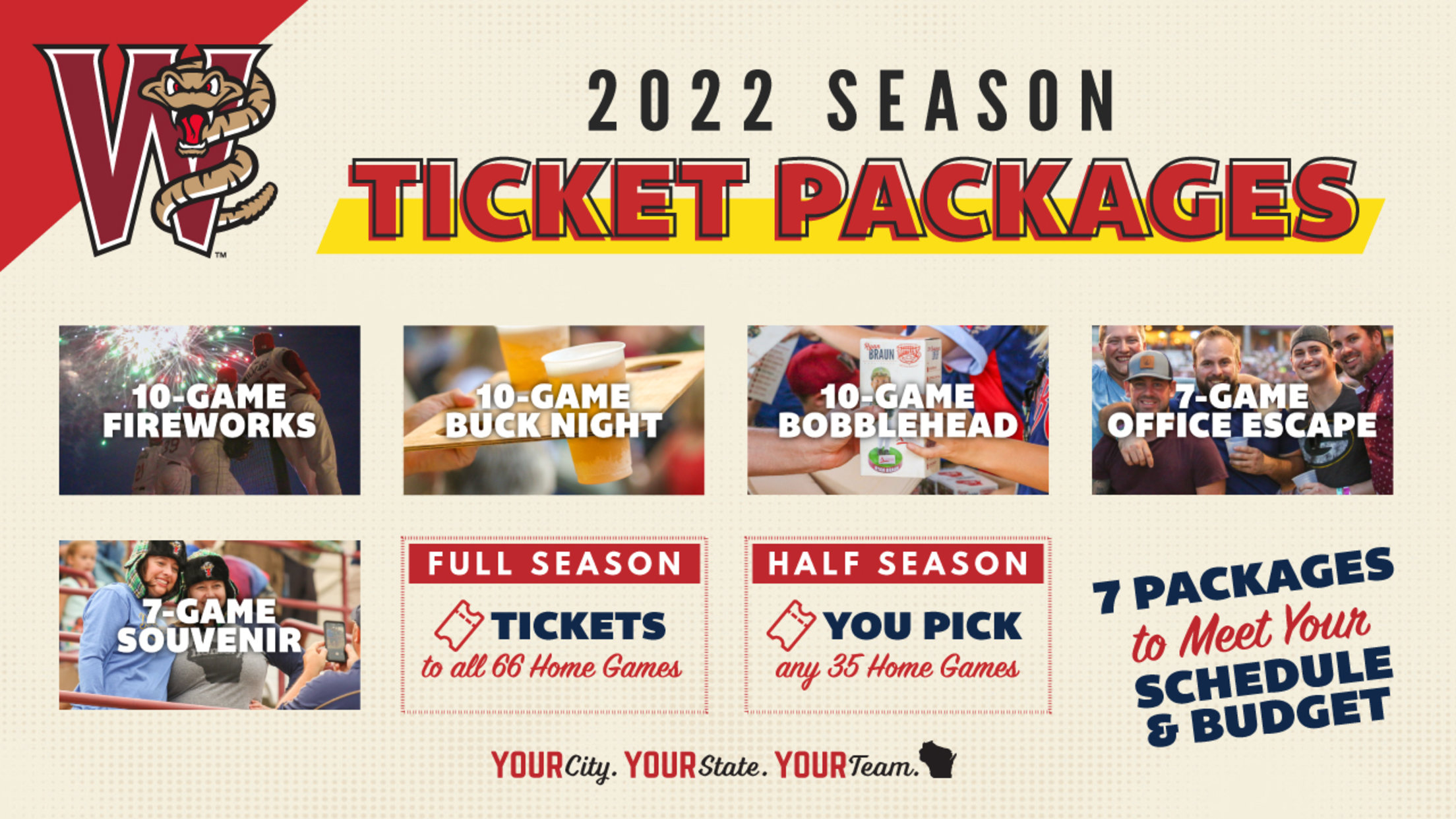GRAND CHUTE, WI – There are just over seven weeks until the start of the 2022 Wisconsin Timber Rattlers season. There are full-season, half-season, ten-game, seven-game, and Flex ticket packages available to pick a ticket option that fits you best and guarantee your seat for all the action.