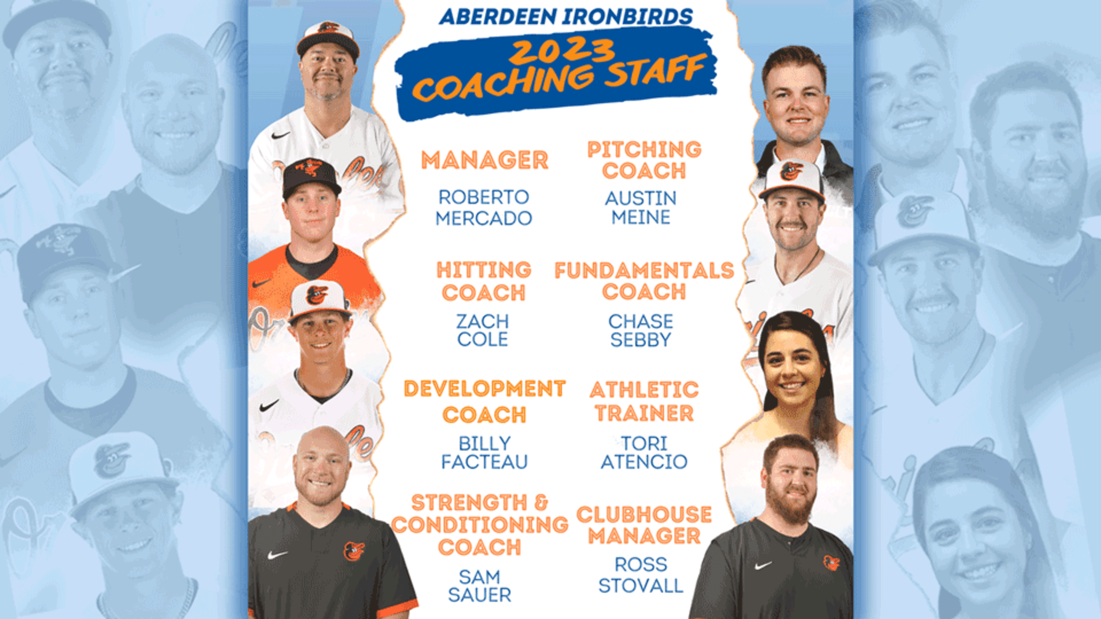 Aberdeen— February 9th, 2023 — Today at Leidos Field at Ripken Stadium, the Baltimore Orioles and Aberdeen IronBirds are excited to announce the 2023 Coaching Staff: Roberto Mercado, Manager; Austin Meine, Pitching Coach; Zach Cole, Hitting Coach; Chase Sebby, Fundamentals Coach; Billy Facteau, Development Coach; Tori Atencio, Athletic Trainer; and Sam Sauer, Strength & Conditioning Coach.
