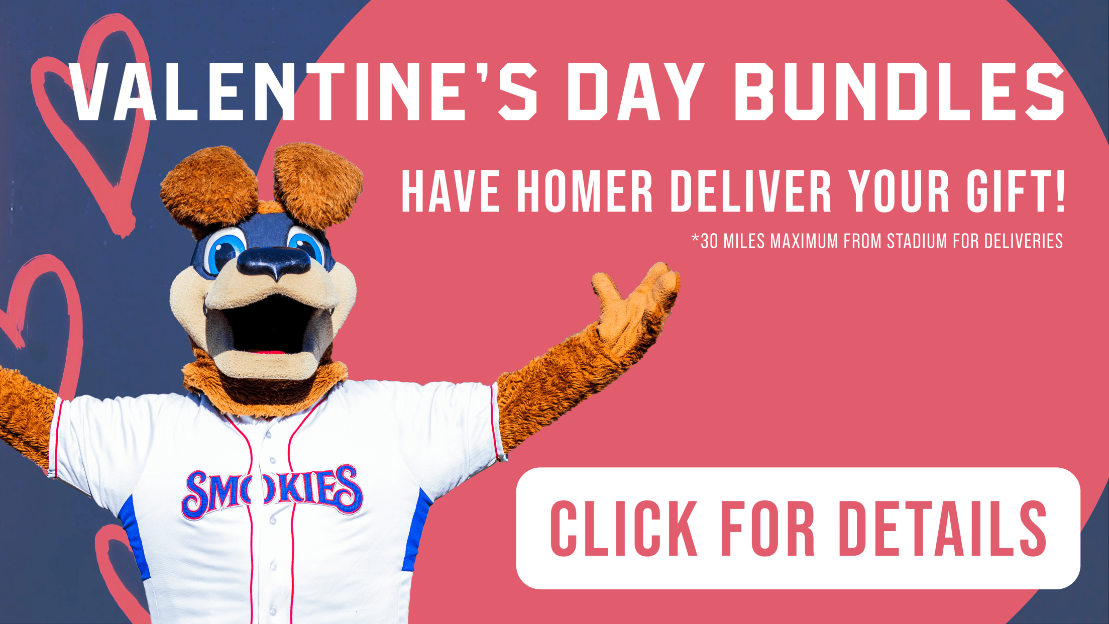 Our 'For Her' Pack flaunts a Smokies t-shirt (S-3XL), '47 Brand adjustable hat, $15 in Stadium Cash, box of chocolates, and two (2) undated tickets for the 2023 season delivered by Homer!