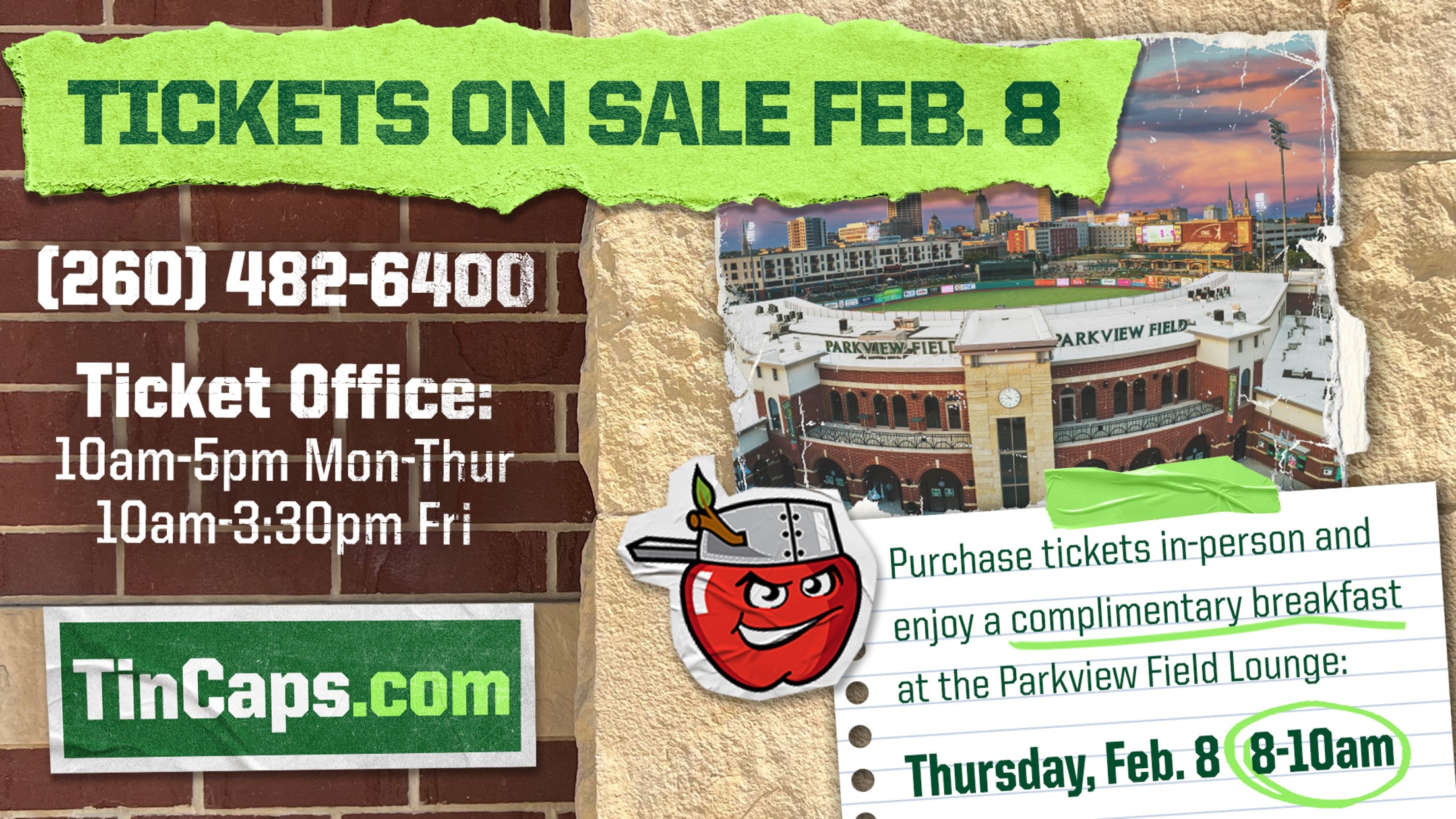Beginning February 8, tickets will be on sale at the ballpark, as well as through TinCaps.com and by phone (260-482-6400).
