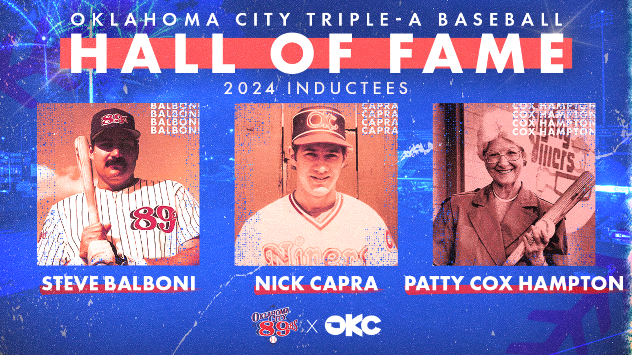 OKLAHOMA CITY – Three inductees have been selected as the 2024 class of the Oklahoma City Baseball Triple-A Hall of Fame: Steve Balboni, Nick Capra and Patty Cox Hampton.
