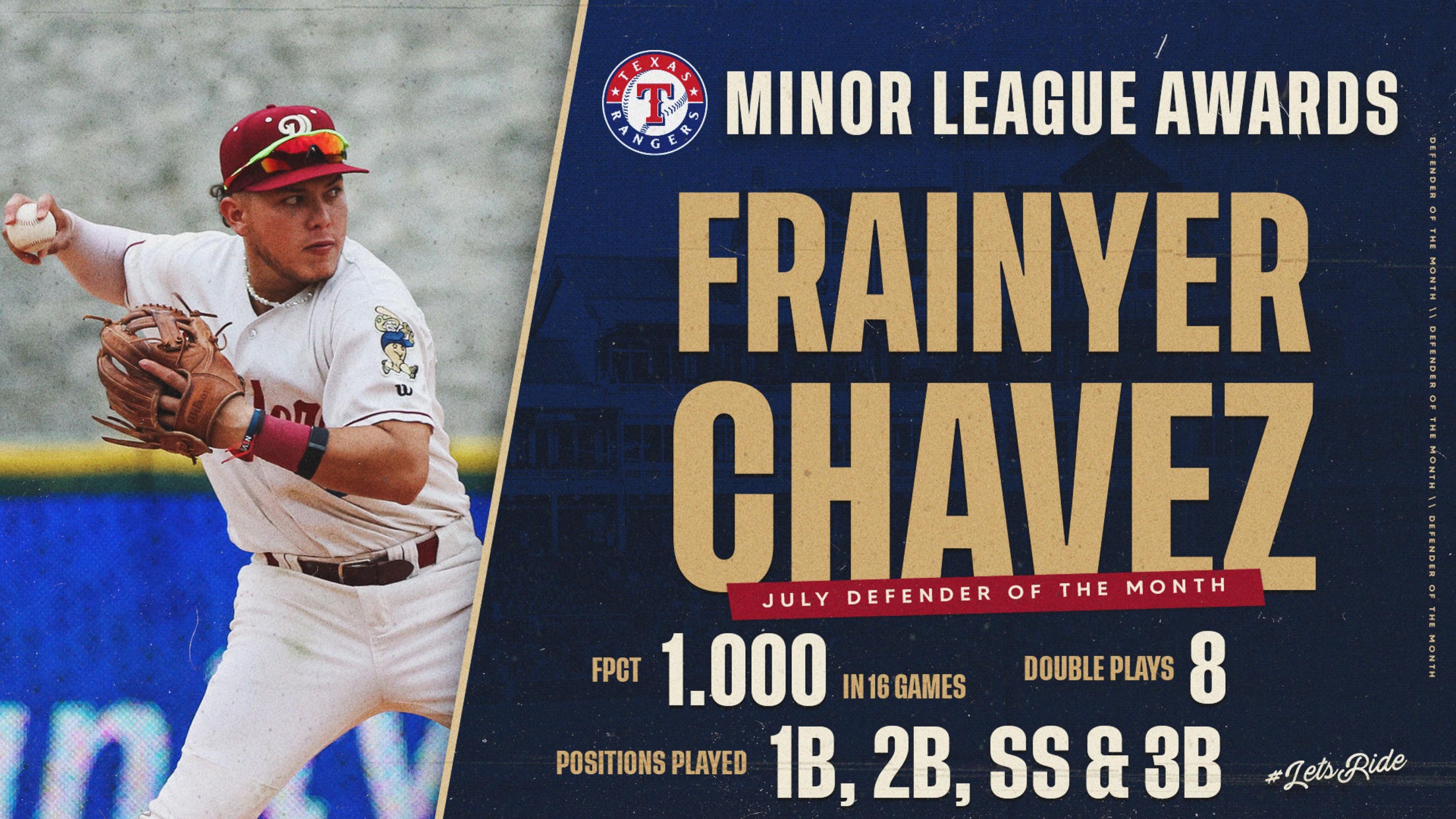FRISCO, Texas (August 12, 2024) – Frisco RoughRiders infielder Frainyer Chavez earned Defender of the Month honors in the Texas Rangers farm system for July.
